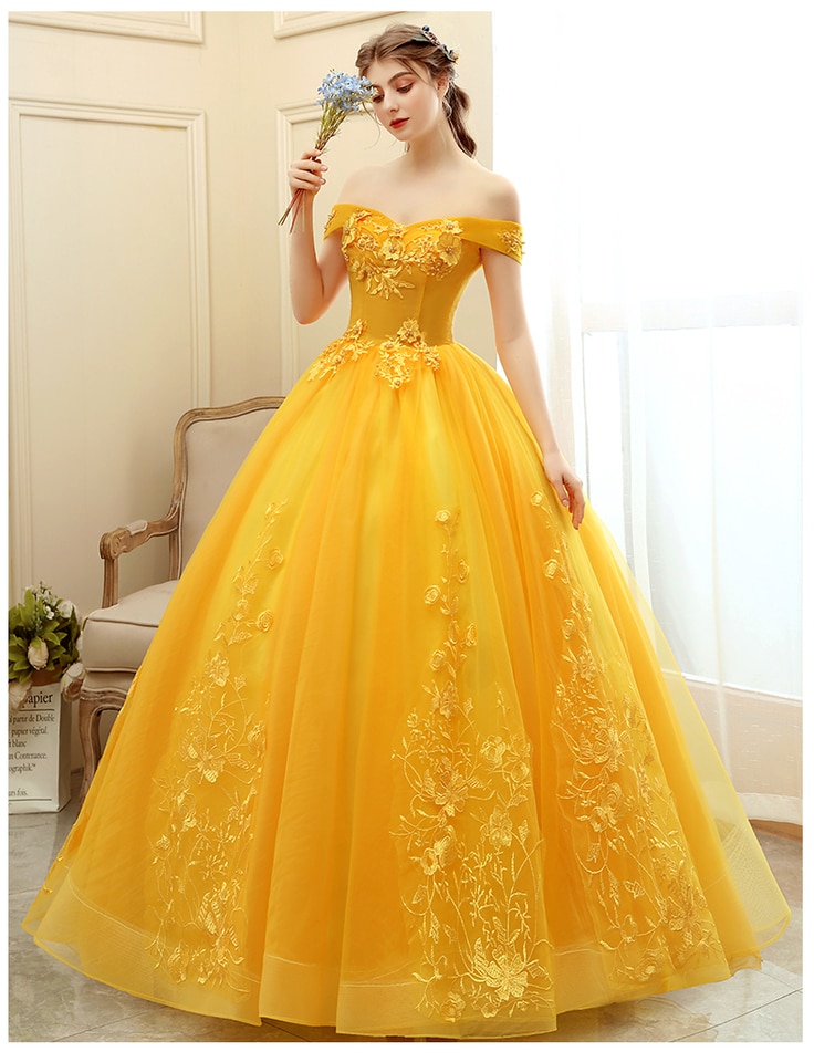 Grâce à son style oscillant entre simplicité et fantaisiste, cette tenue de bal pour femme s’adapte à toutes les occasions : soirée costumée, gala, mariage, banquet. Ainsi, soyez rayonnante où que vous soyez avec cette robe de princesse jaune.