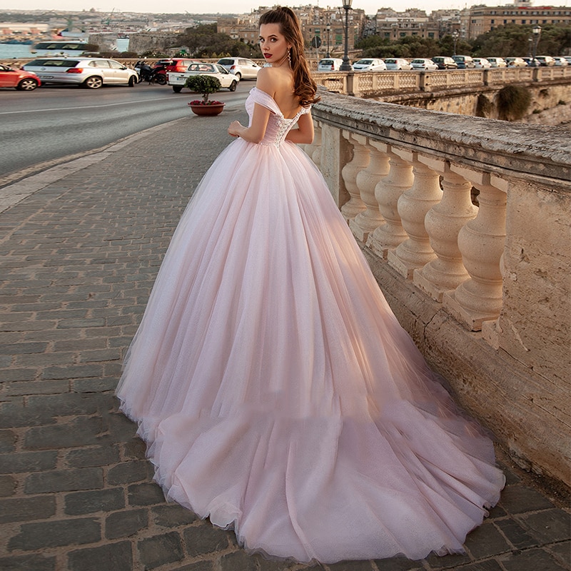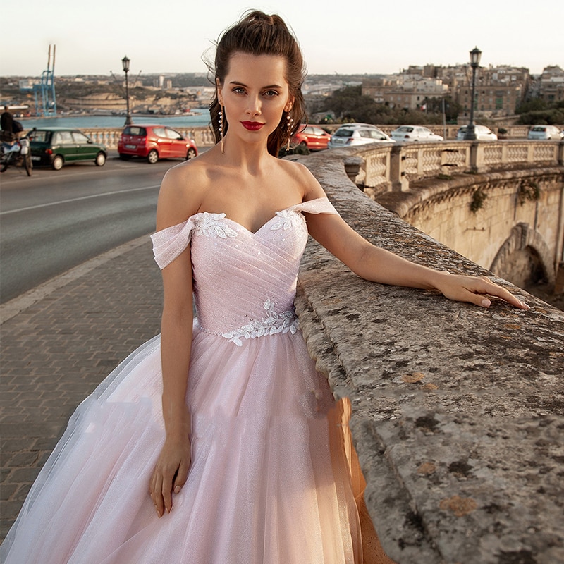 Cette robe de mariée princesse rose vous permettra de changer du classique de la robe blanche. Elle est dotée d’un bustier avec des manches tombant sur les bras et d’une longue jupe en voile avec une traine. Vous pouvez rajouter un jupon très gonflant pour mettre en valeur le volume de la robe et pour obtenir l’allure d’une vraie princesse.