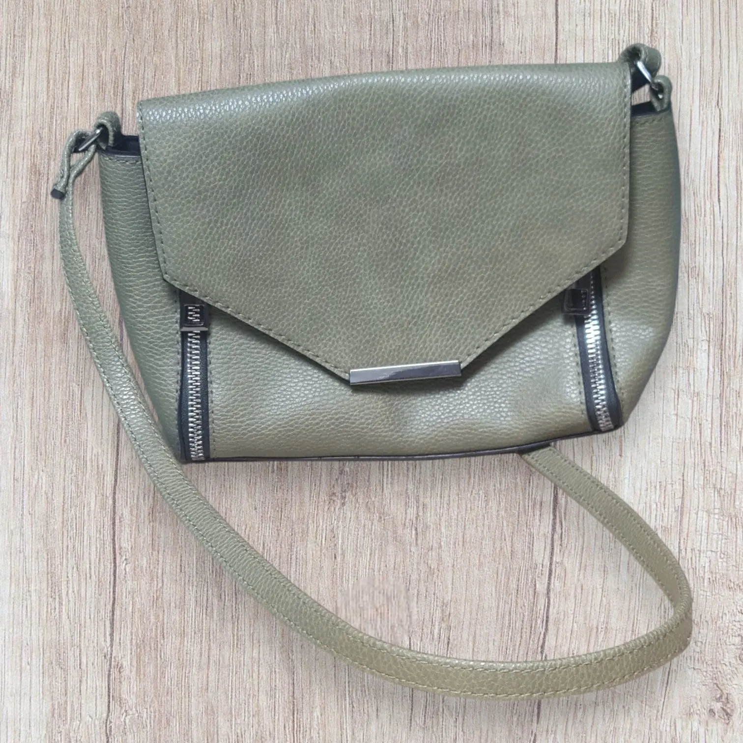 Sac pochette femme Atmosphère – Similicuir kaki – Bandoulière & détails métalliques