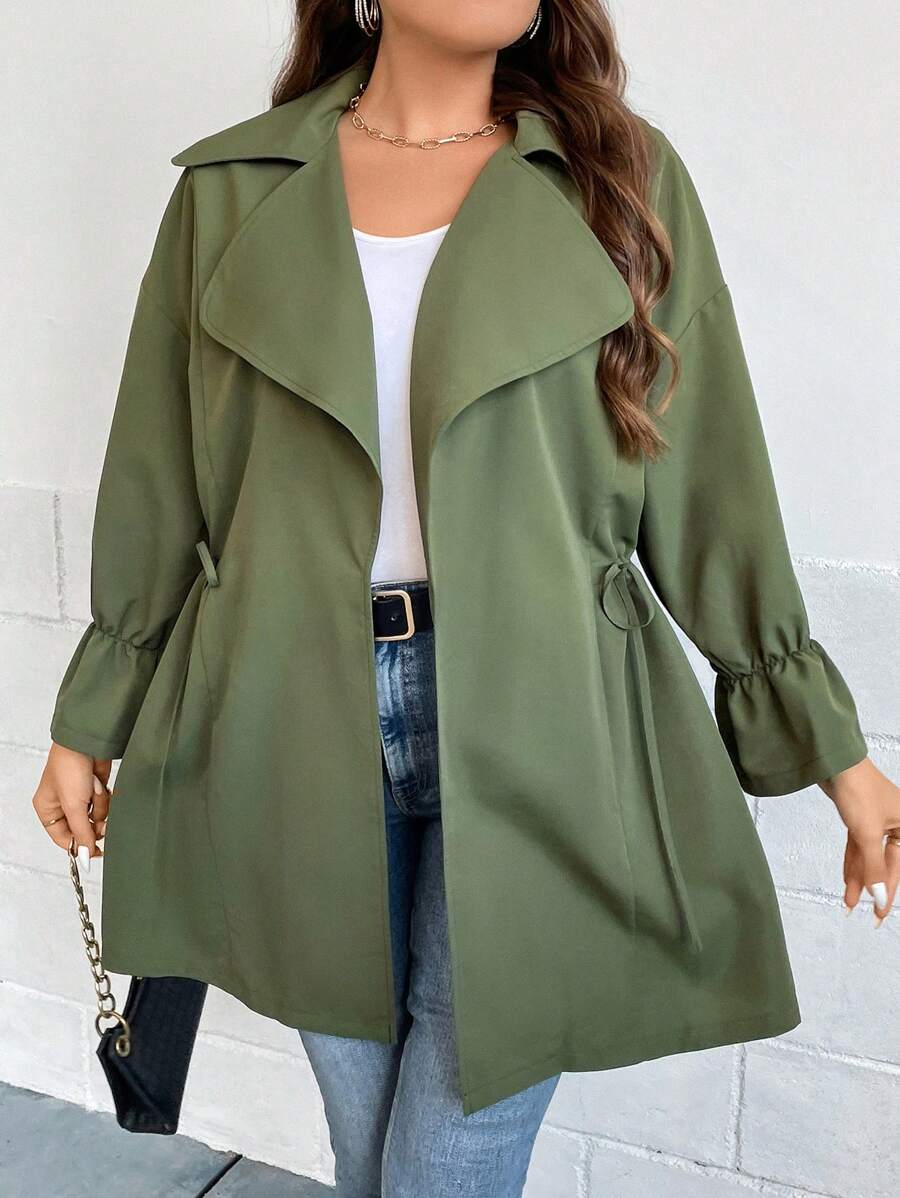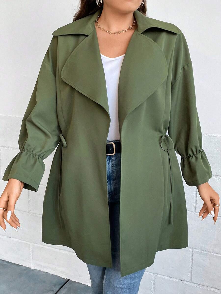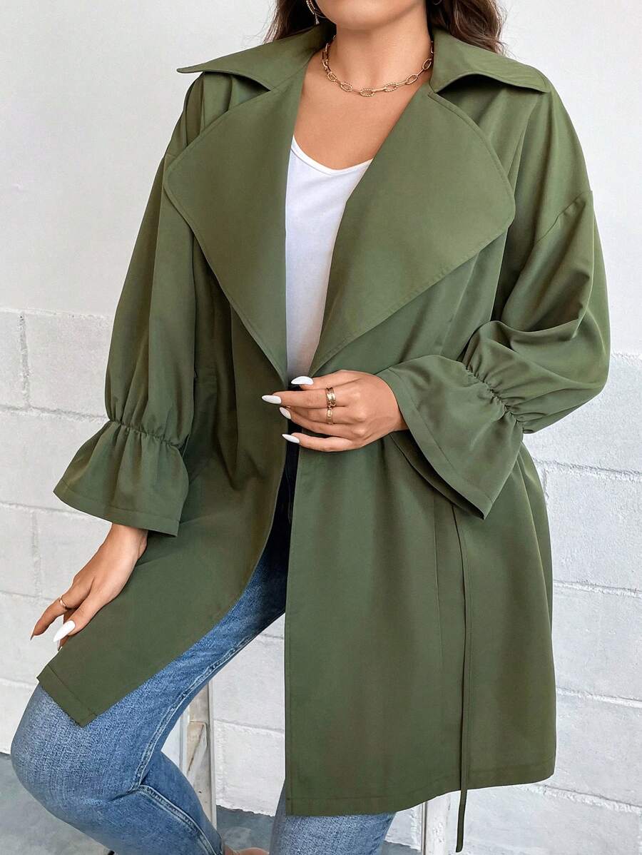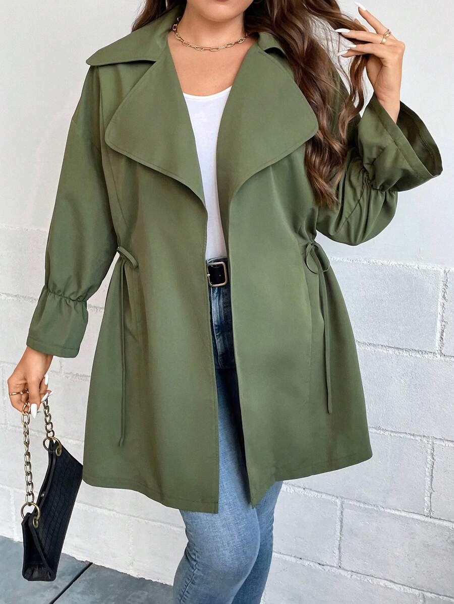 SHEIN GRANDE TAILLE (44/46/48/50/52/54) Trench coat à col cascade – Ceinture ajustable, manches larges, grande taille