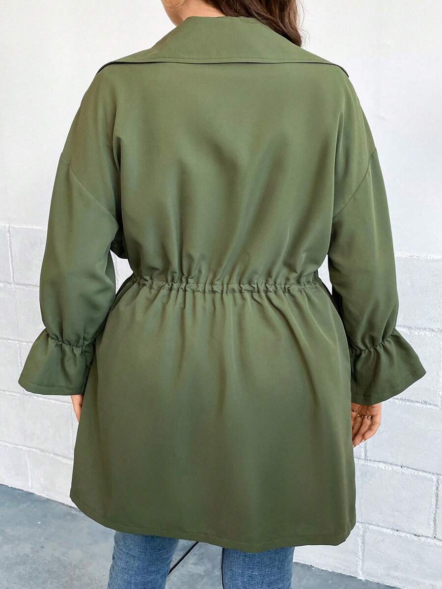 SHEIN GRANDE TAILLE (44/46/48/50/52/54) Trench coupe-vent à boutons et poches – Kaki, grande taille