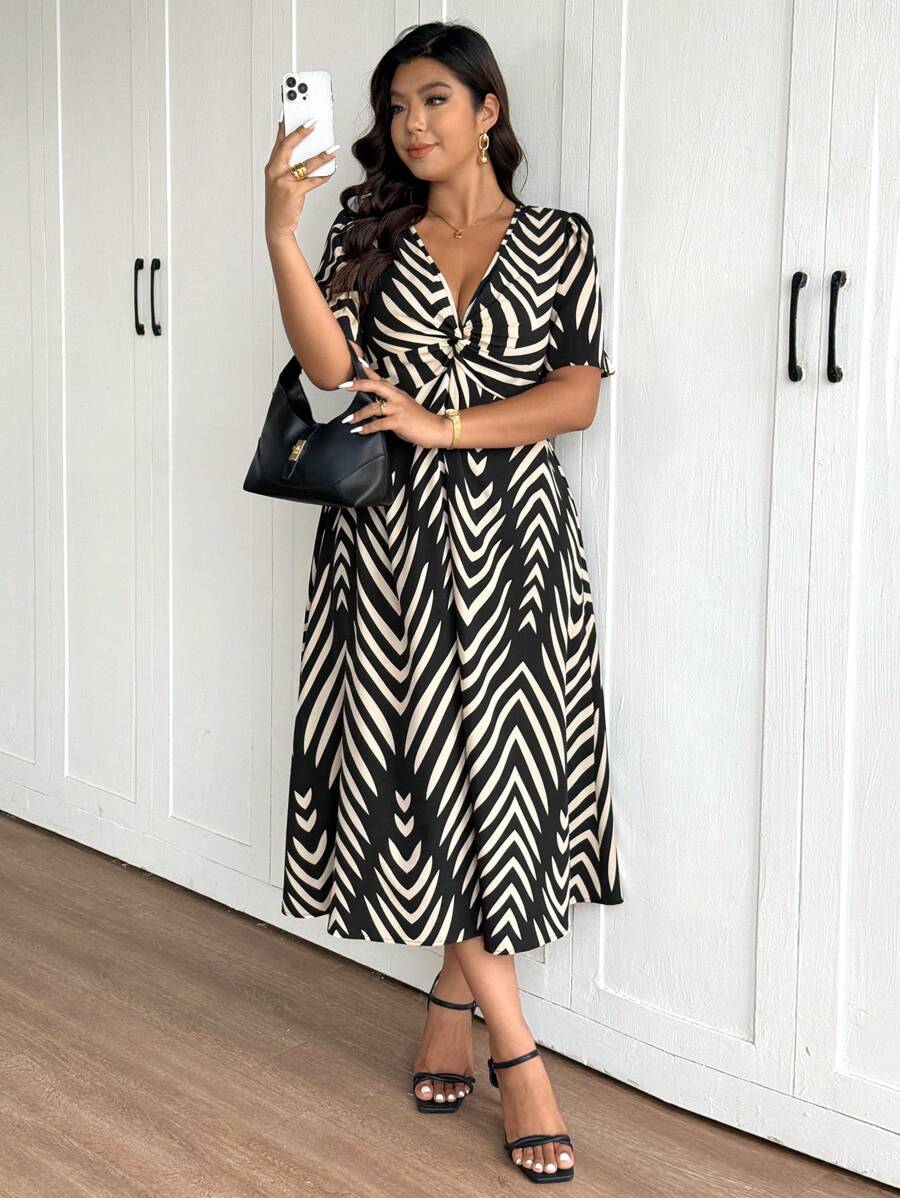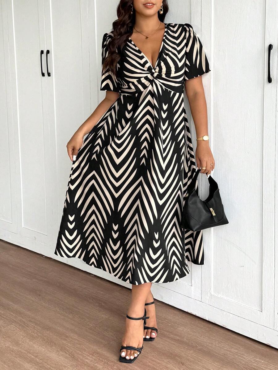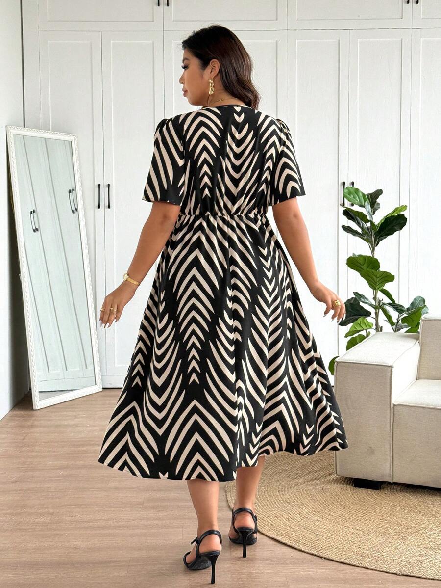 Cette robe casual grande taille est idéale pour un style élégant et sans effort au quotidien. Dotée d’un col en V flatteur, de manches courtes confortables et d’un motif à rayures verticales, elle allonge la silhouette tout en assurant un port agréable. Sa coupe fluide en fait un choix parfait pour les journées d’été, les sorties décontractées ou même le bureau. Une pièce polyvalente qui allie simplicité et féminité