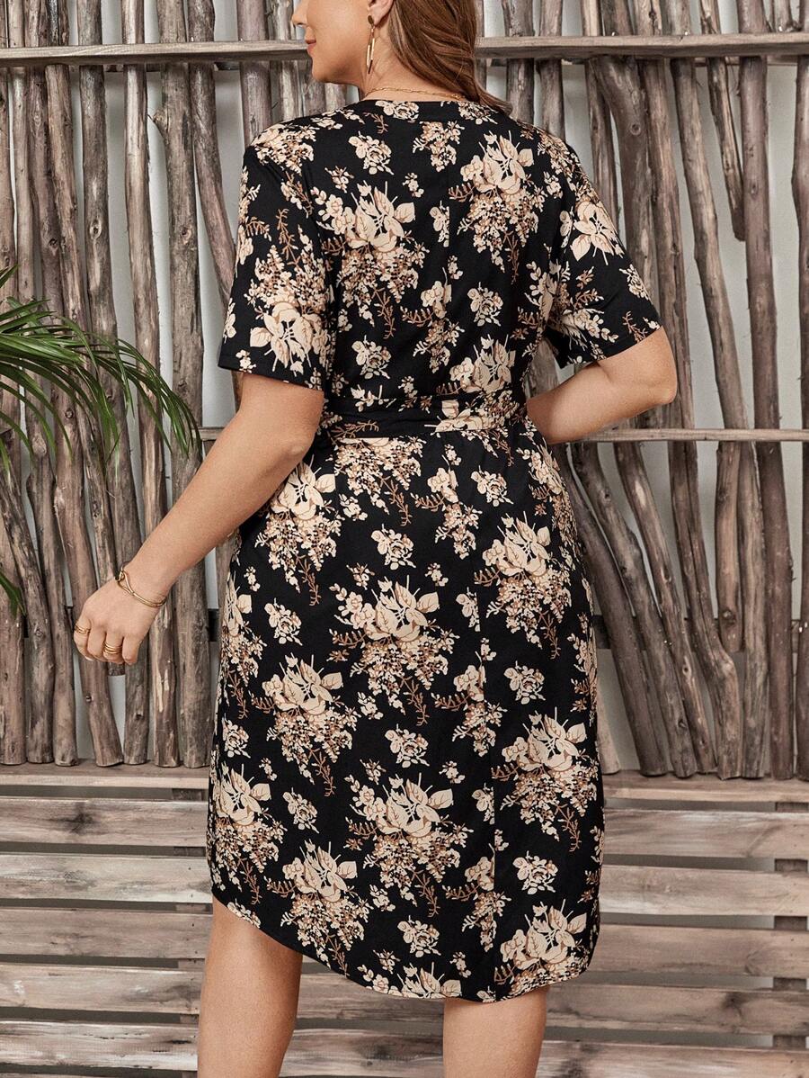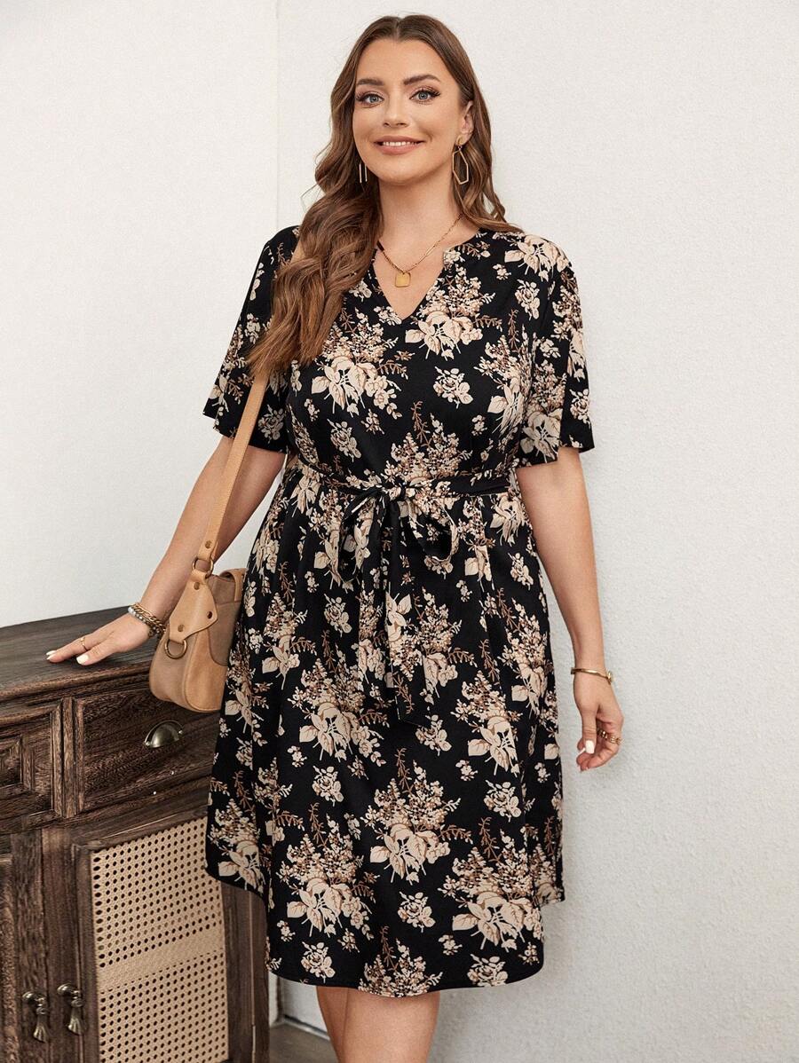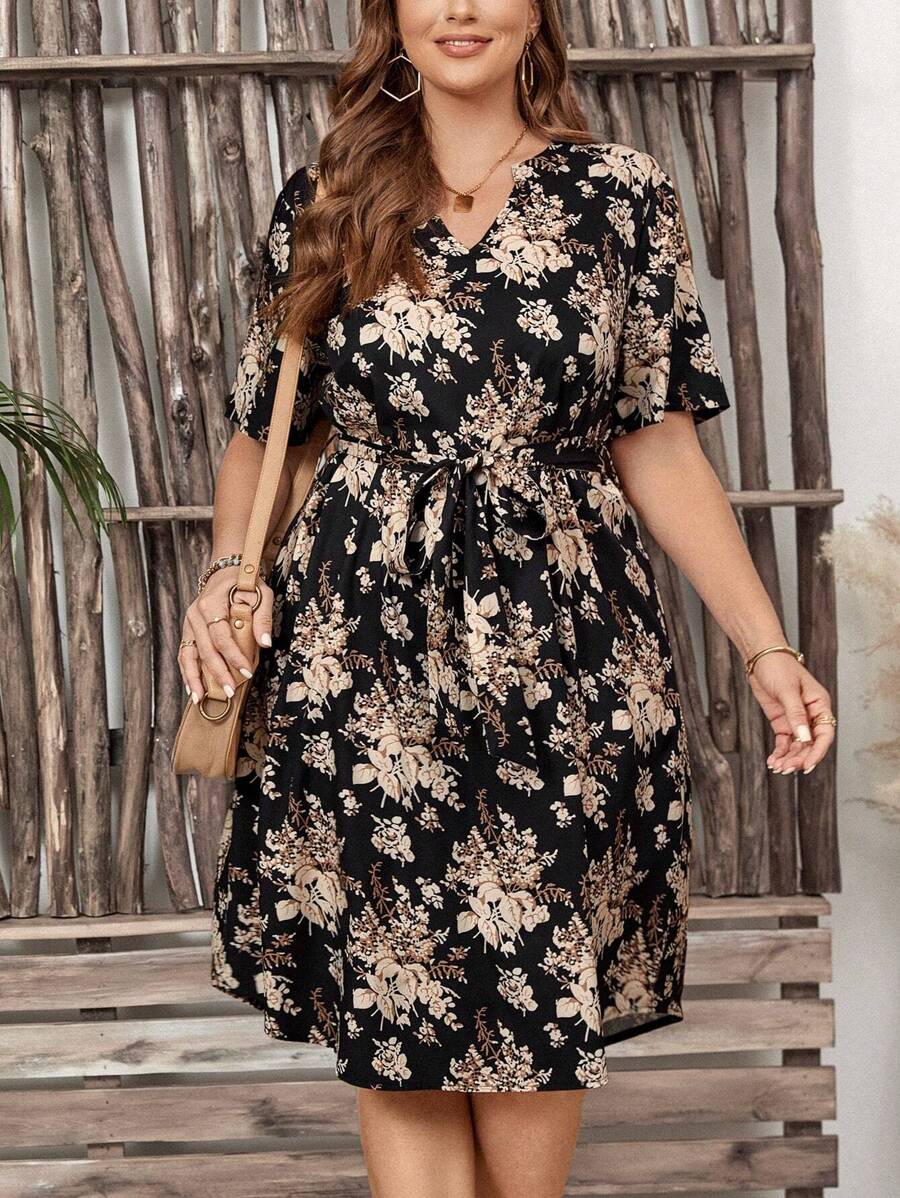 SHEIN GRANDE TAILLE (44/46) Robe imprimée florale à col bénitier – Fraîcheur estivale et charme féminin