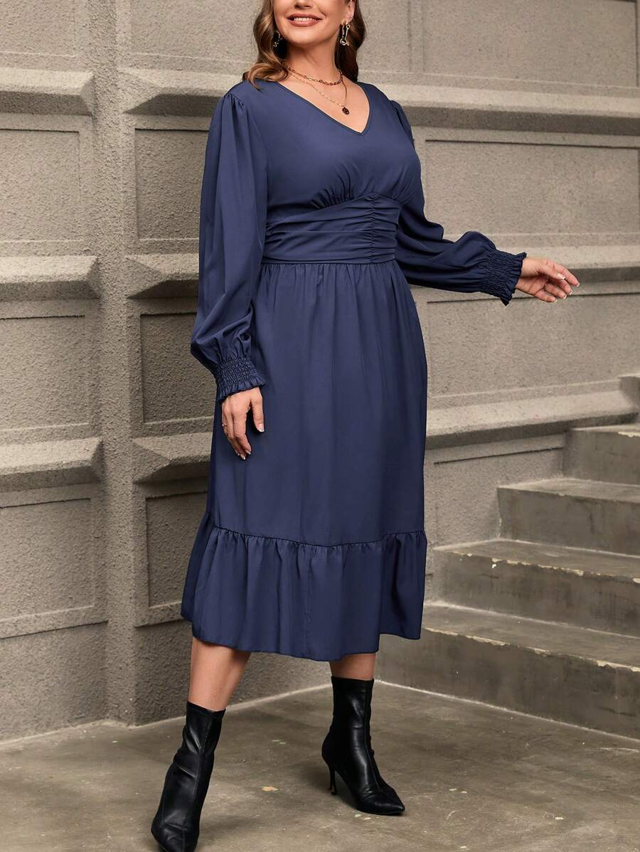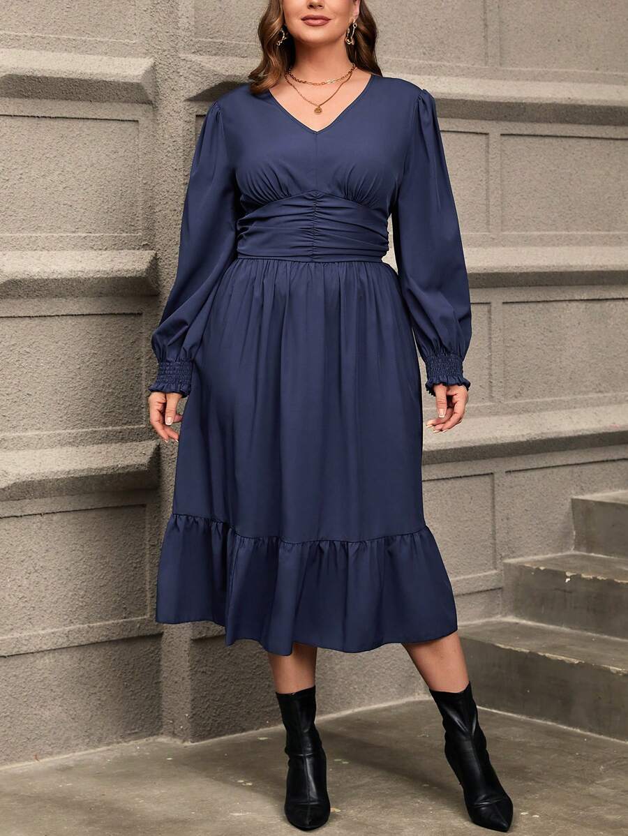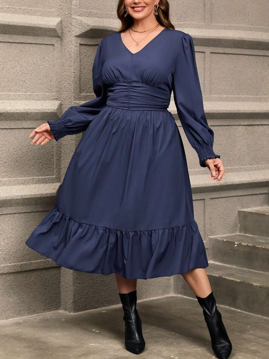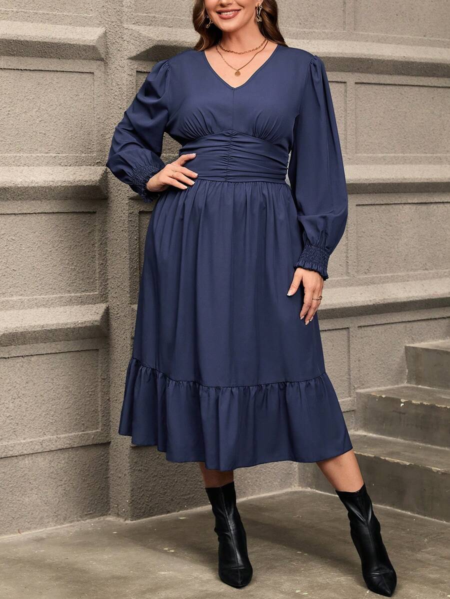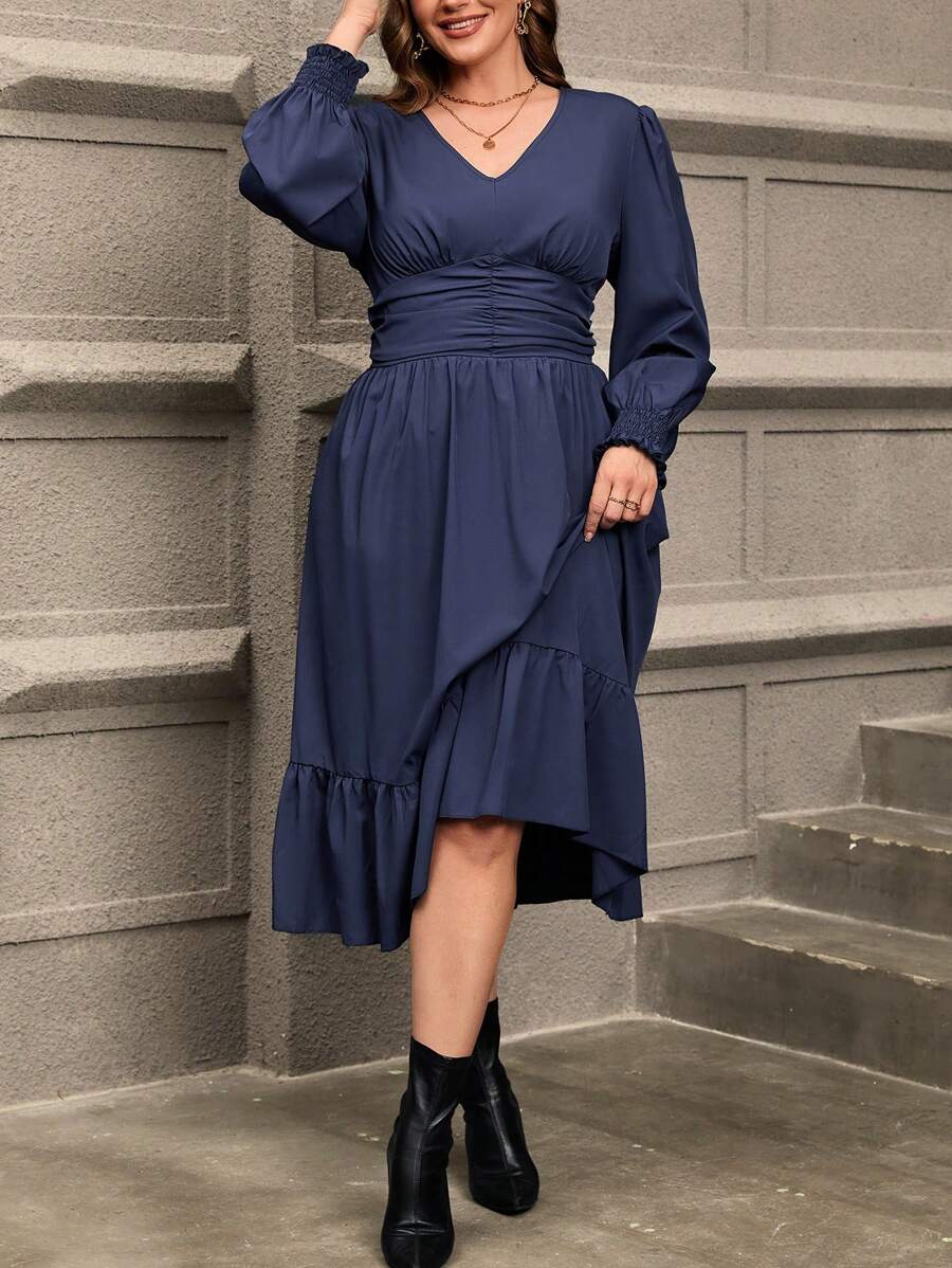 Robe grande taille avec taille froncée et ourlet volant, parfaite pour un look à la fois décontracté et élégant