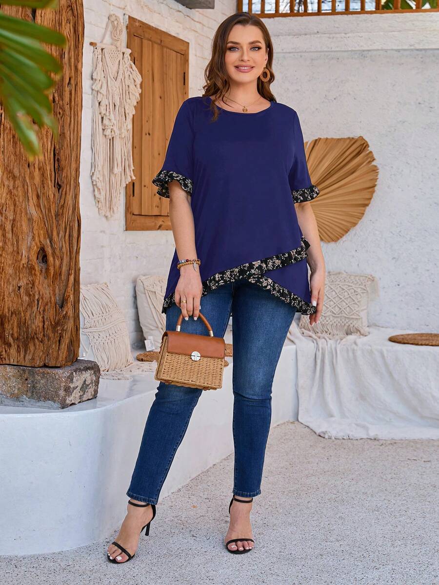 Liquette grande taille à col rond, imprimé original et couture élégante – parfait pour un look quotidien tendance