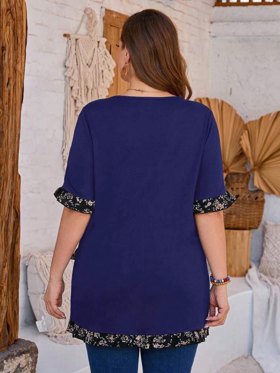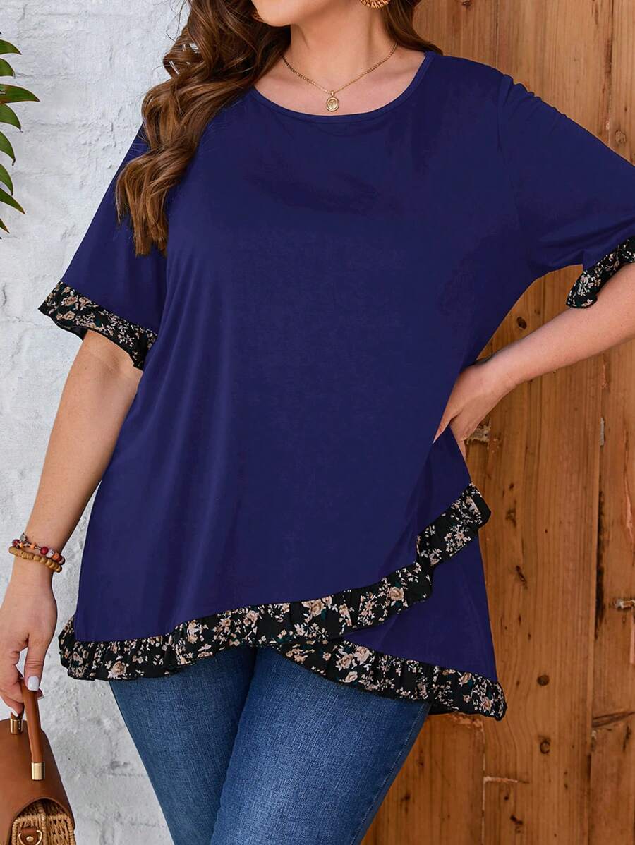 SHEIN GRANDE TAILLE (46/48) Liquette imprimée à col rond – coupe décontractée et finitions soignées