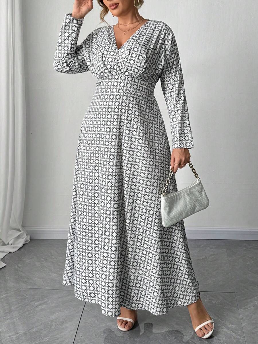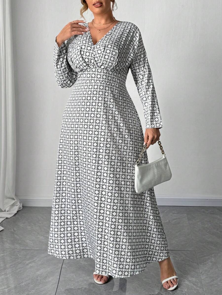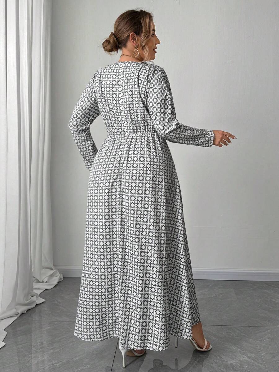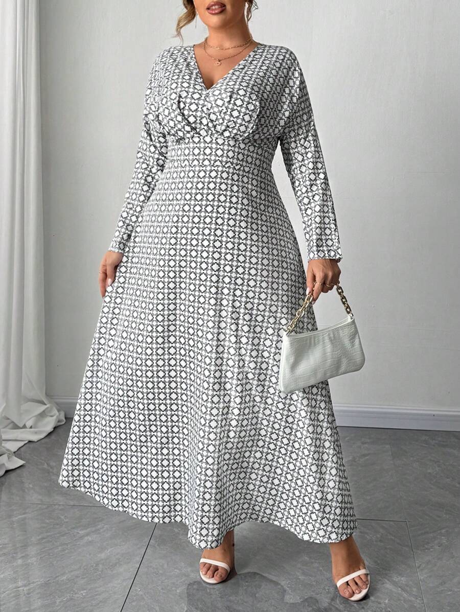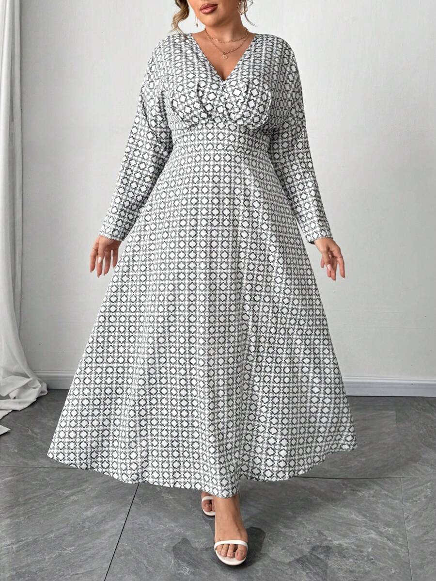 SHEIN GRANDE TAILLE (48/50/52/54) -Robe longue Imprimé géométrique, manches chauve-souris, taille haute