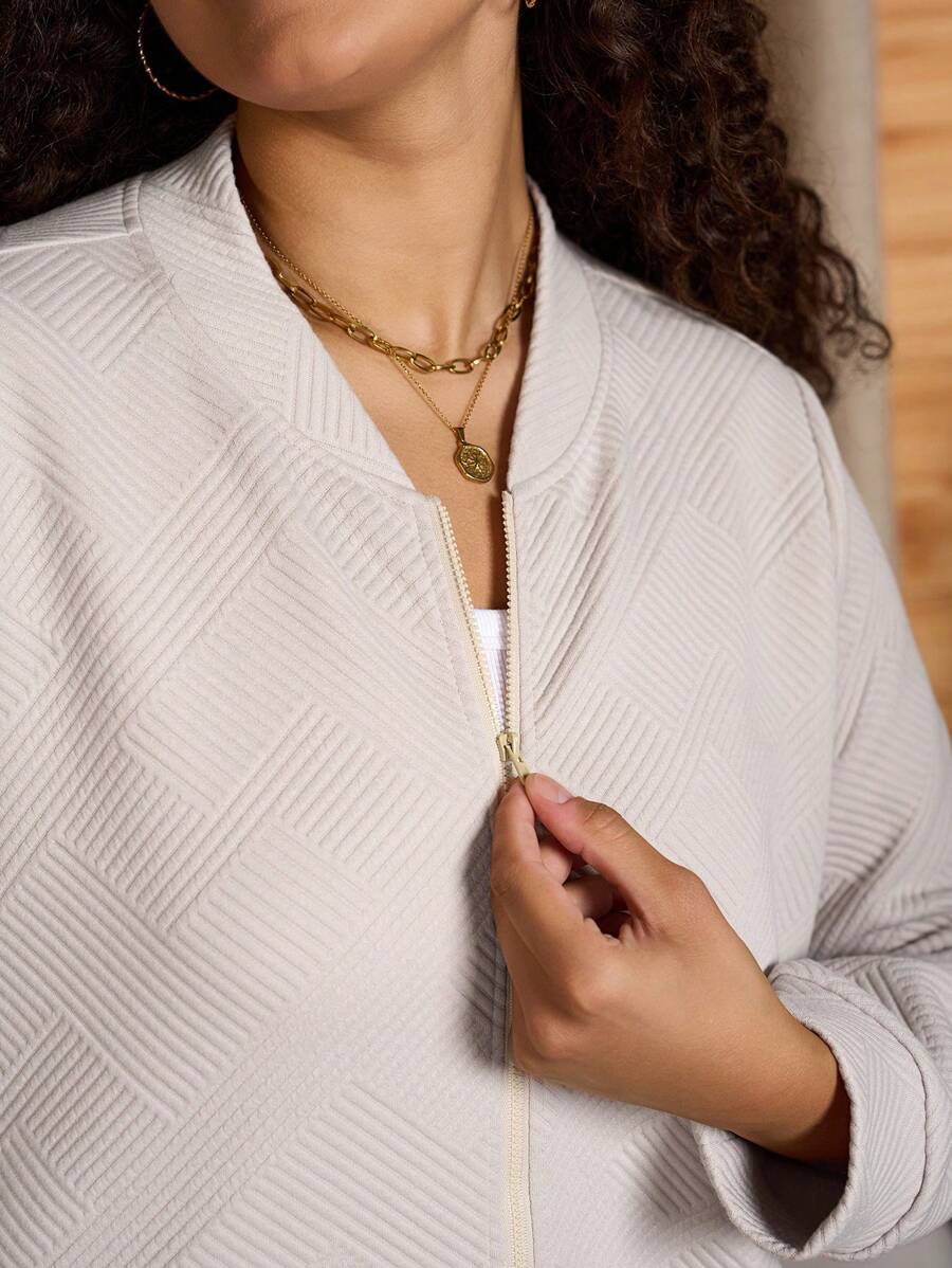 Dotée d’une fermeture zippée sur le devant, elle offre un enfilage pratique et un style contemporain. Sa longueur de manches classique et sa structure simple assurent un bon équilibre entre confort et élégance, convenant parfaitement aux sorties quotidiennes, au travail ou aux déplacements en ville.