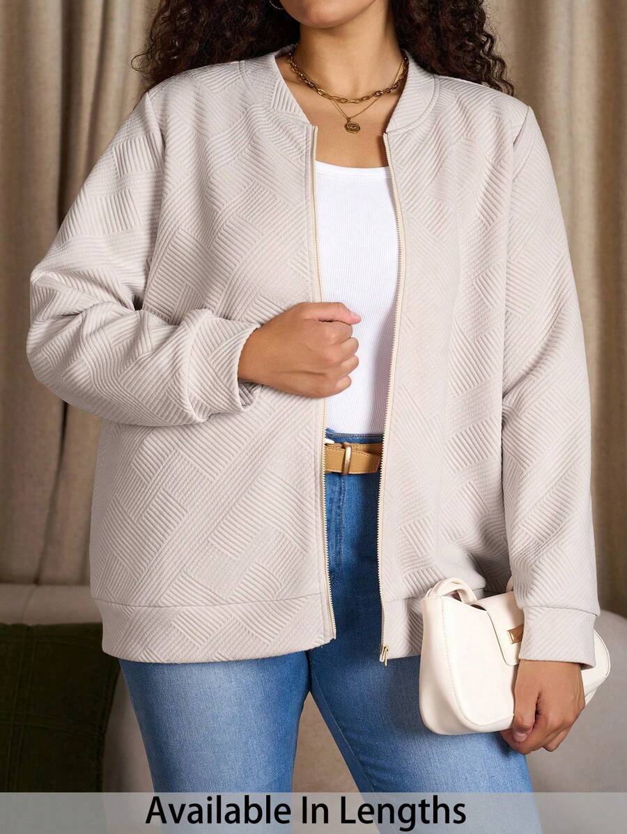Veste légère grande taille à fermeture zippée, couleur unie et design simple, idéale pour un style casual et un usage quotidien