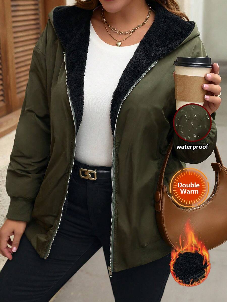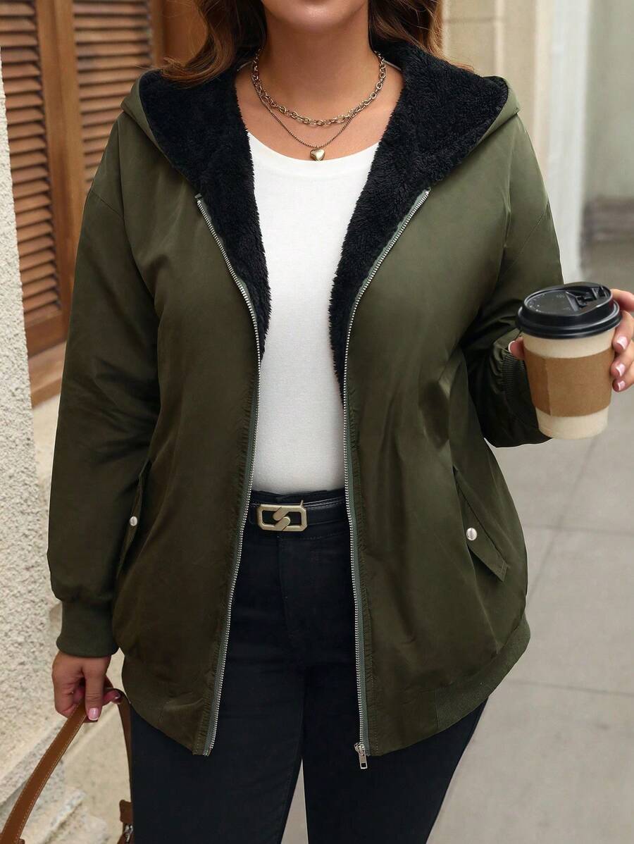 Veste grande taille à fermeture zippée et manches longues, élégante et pratique, idéale pour un usage quotidien
