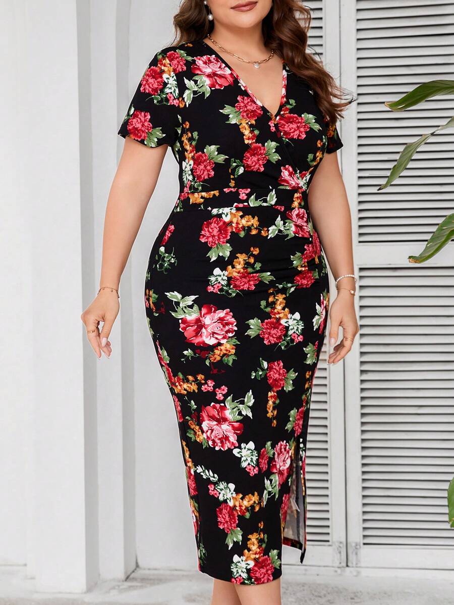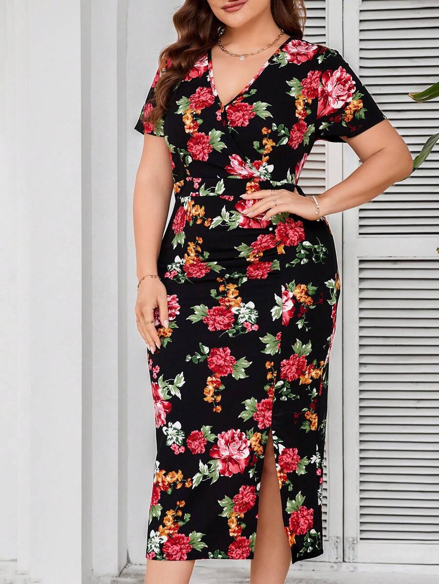Cette robe grande taille de chez SHEIN met en valeur la silhouette avec élégance. Son imprimé fleuri apporte une touche romantique, tandis que l’encolure en V sublime le décolleté. La fente frontale structure la pièce et souligne la taille de façon flatteuse. Confortable et fluide, c’est le modèle parfait pour une sortie chic ou une occasion spéciale
