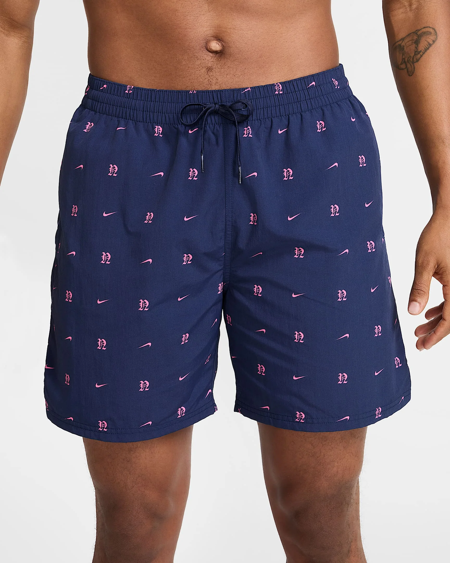 Short de bain Nike bleu marine à imprimé lettres roses NESSF518