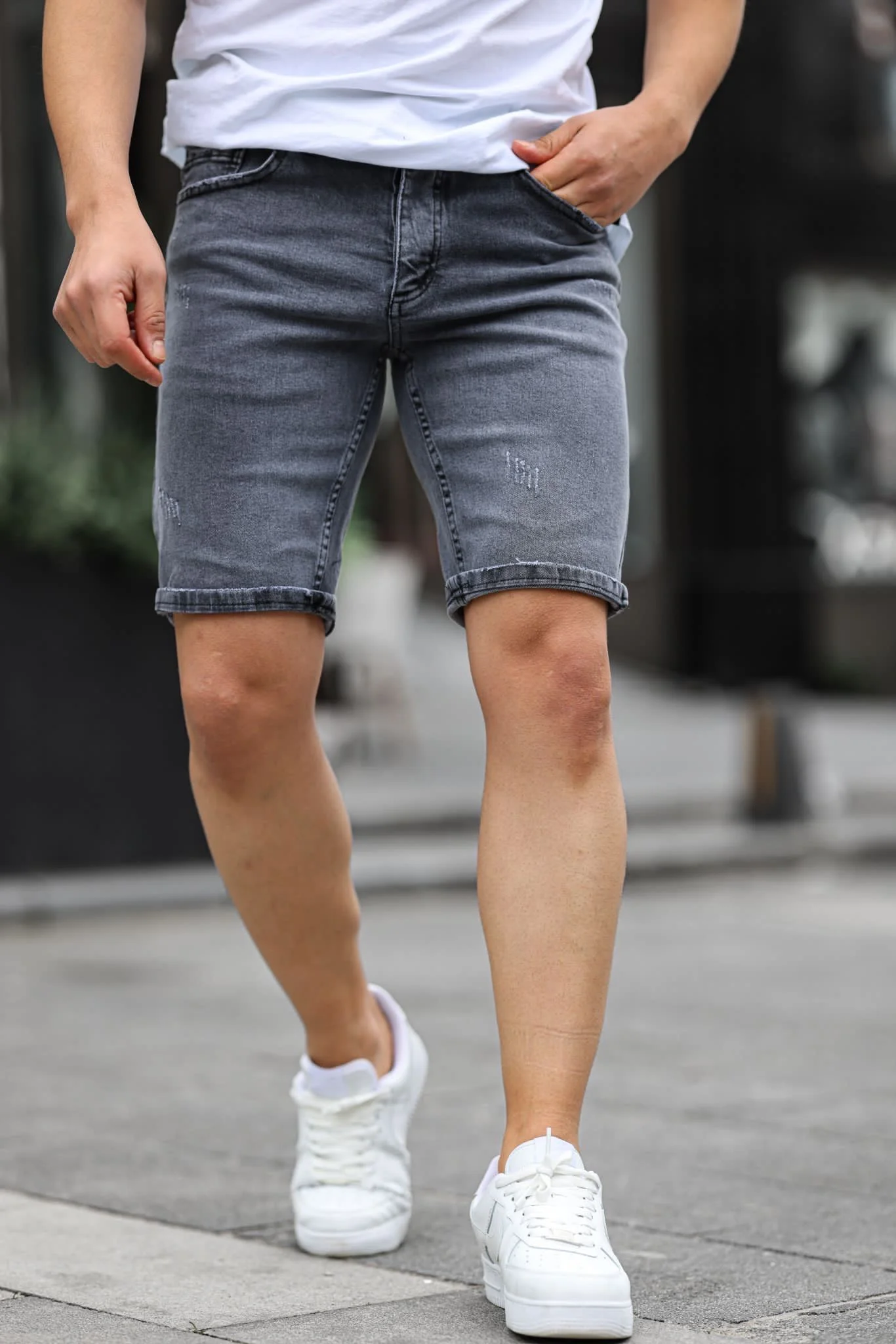 Short en jean gris foncé pour homme