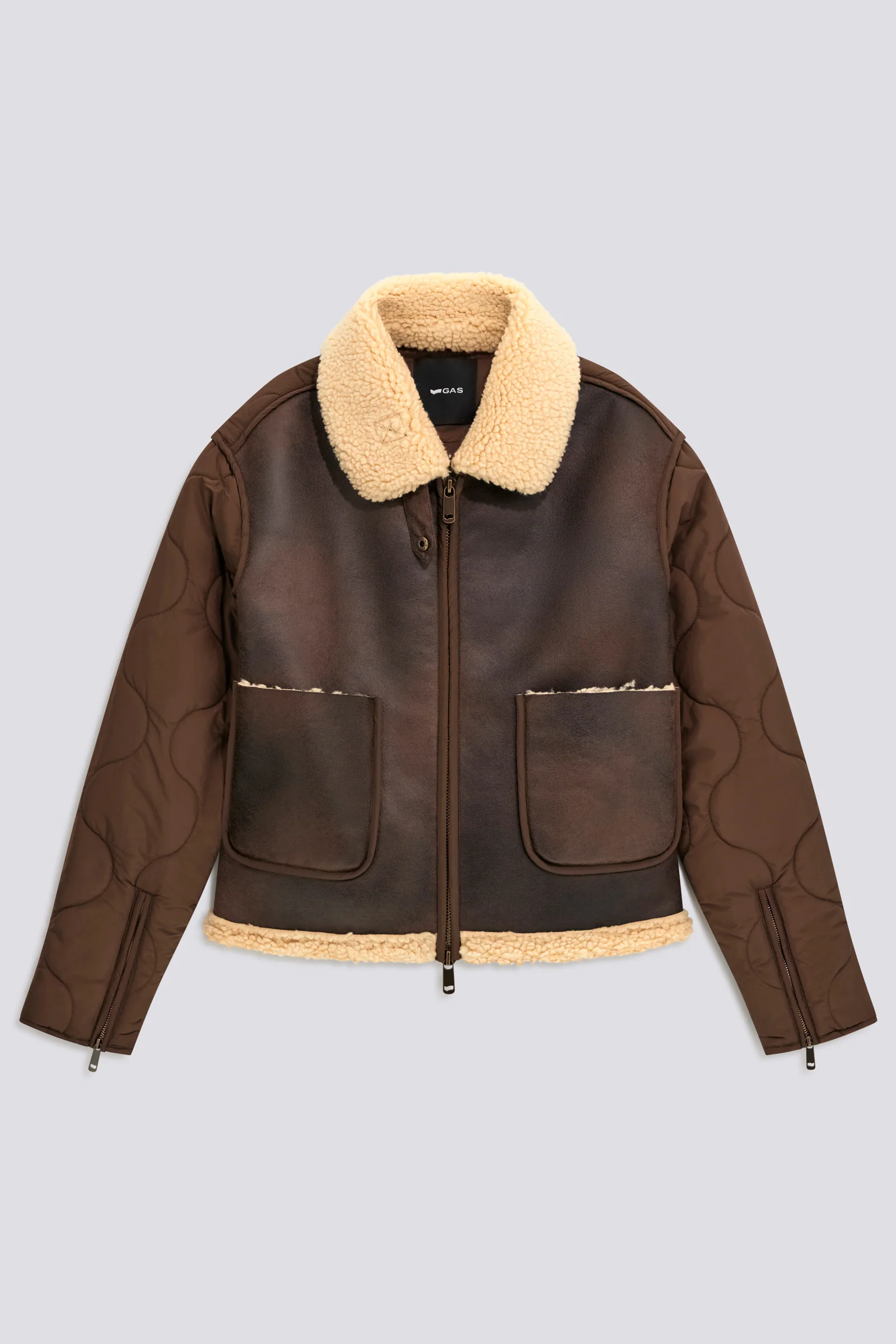 Questo giubbotto donna combina l’aspetto cozy del finto montone con la trapuntatura su maniche e schiena, creando un contrasto materico originale e contemporaneo. Il fit è avvolgente, pensato per garantire comfort e stile anche nei mesi più freddi. Completano il look i dettagli logati: puller personalizzato e placca logo in metallo, firma inconfondibile del brand.