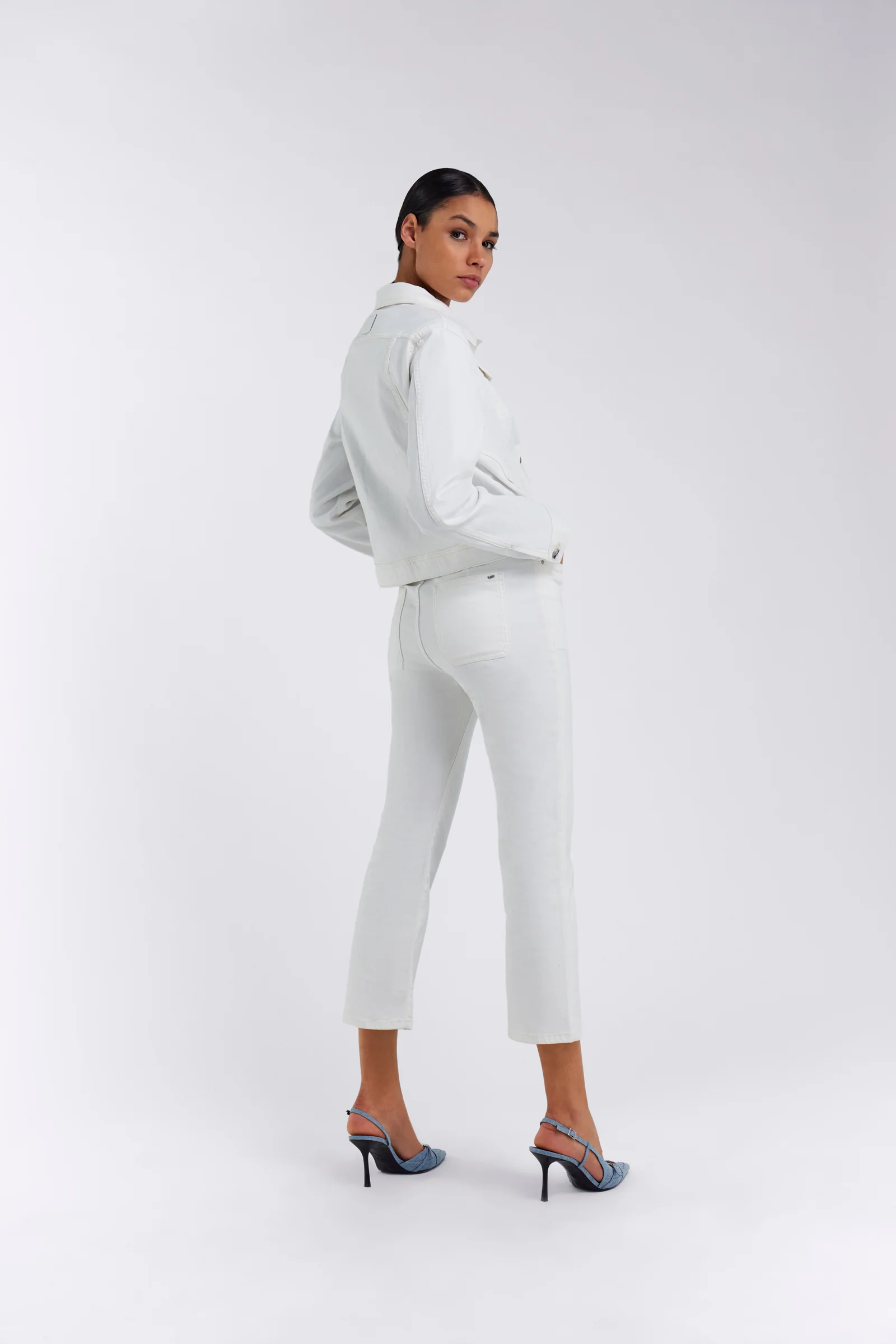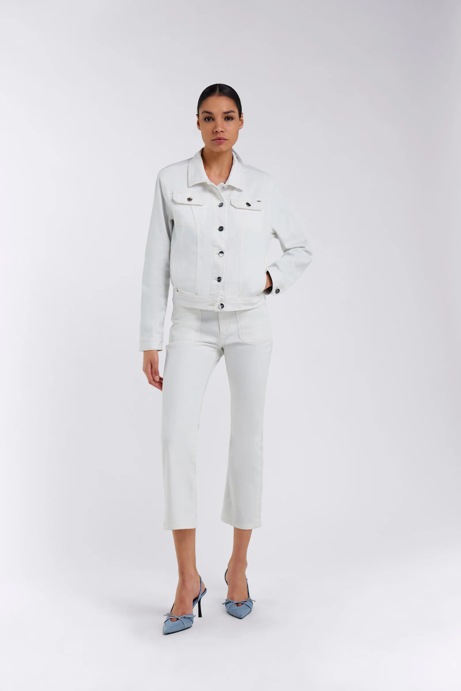 Denim 5 tasche donna skinny fit, un must-have dal fascino essenziale e contemporaneo. Realizzato in tessuto bull bianco naturale da 9.00 OZ, è caratterizzato da tasche frontali workwear, aggiungendo un twist di ispirazione utility. Perfetto con una camicia oversize per un look minimal-chic o con un top aderente per un’allure più audace.