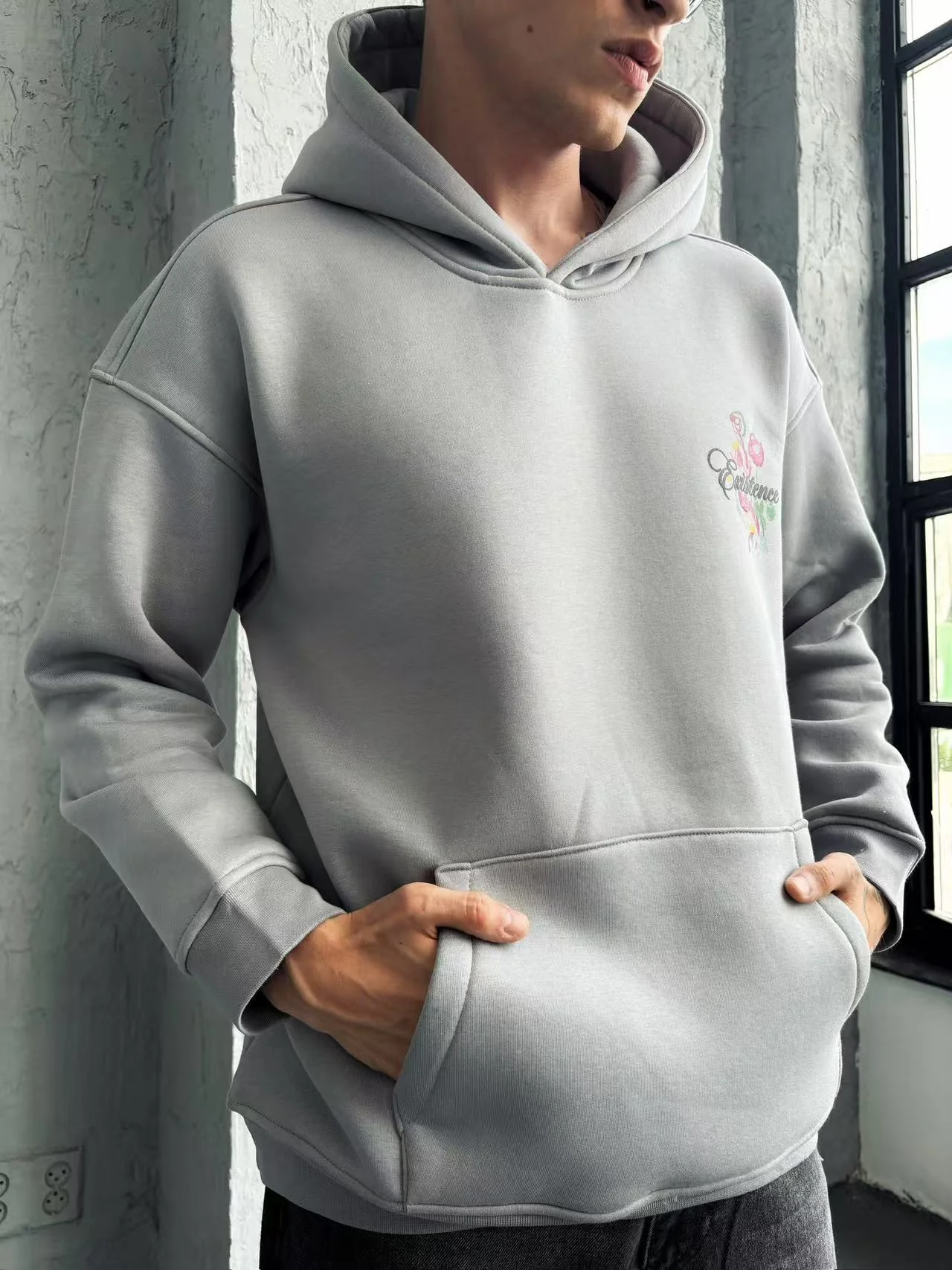 Sweat à capuche imprimé gris