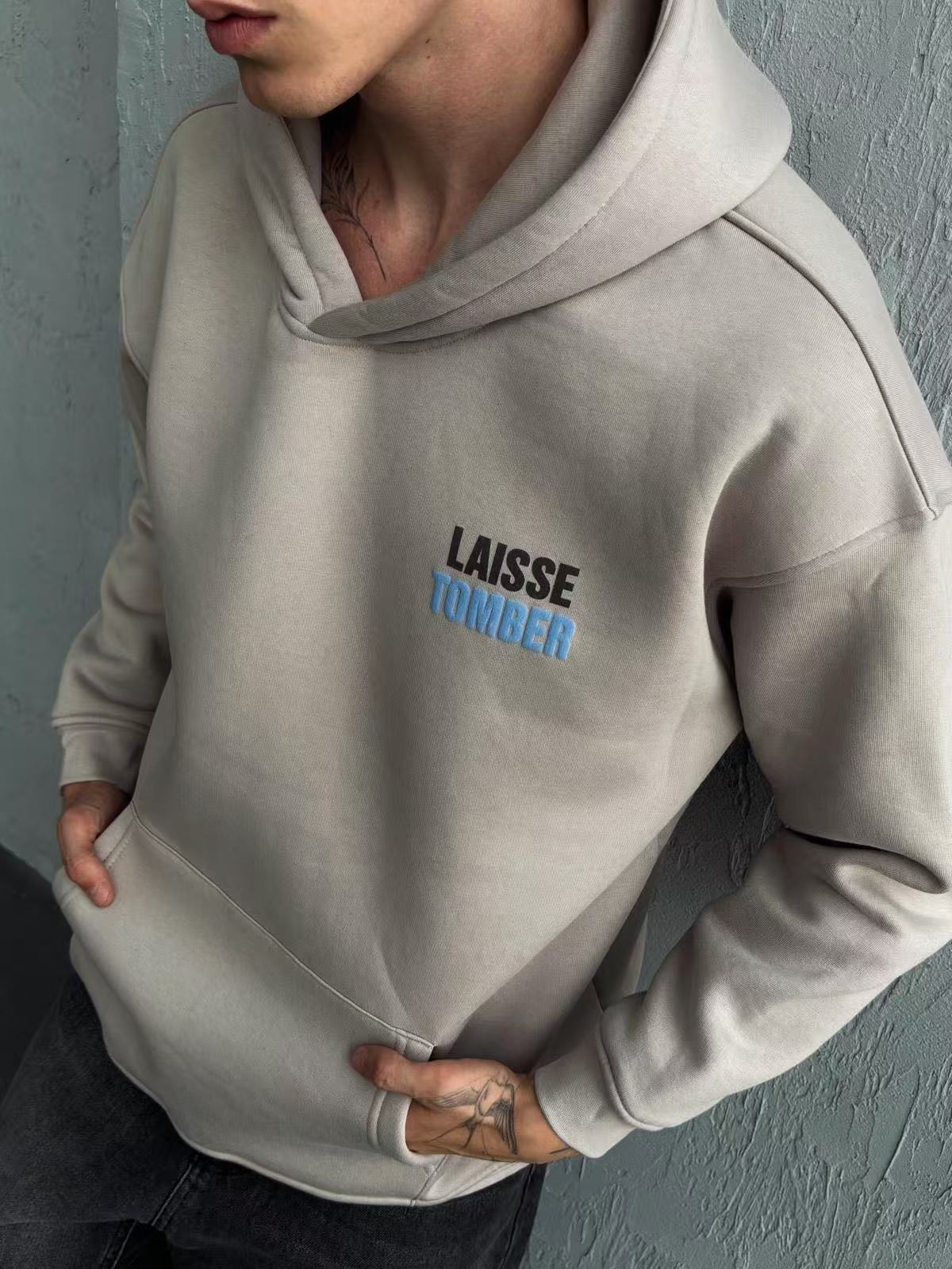 Sweat à capuche imprimé LAISSE TOMBER beige