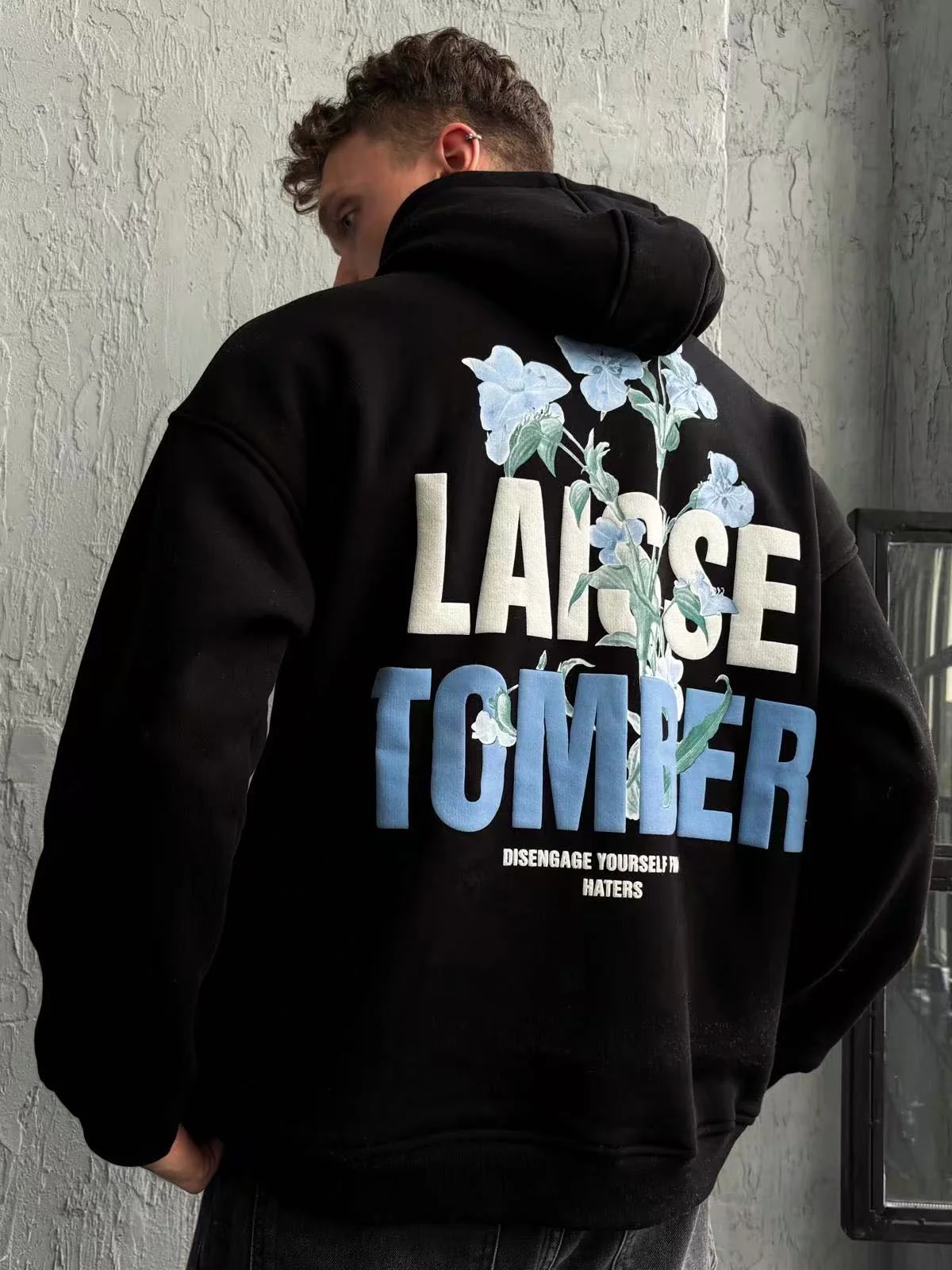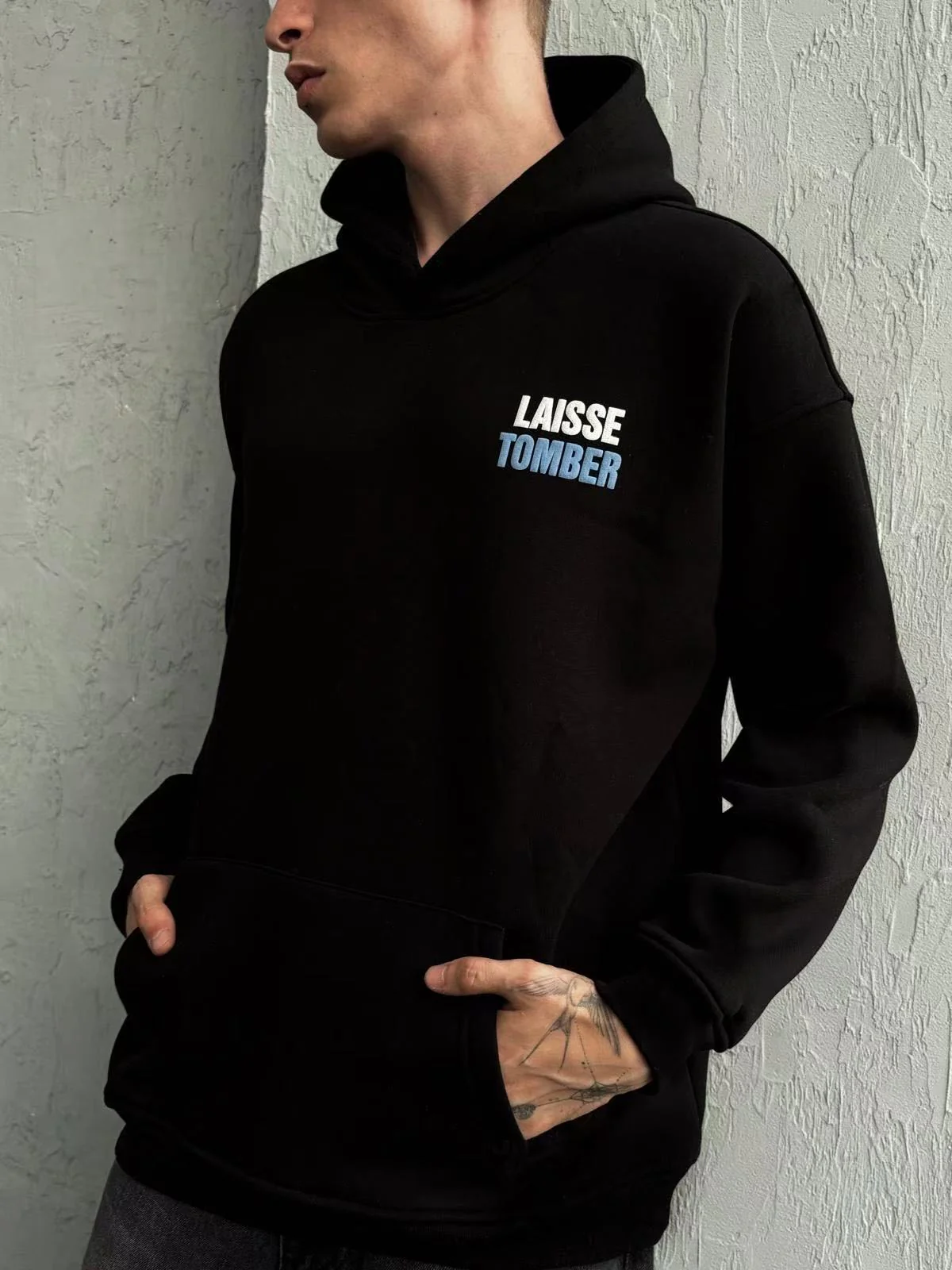 Sweat à capuche imprimé LAISSE TOMBER noir