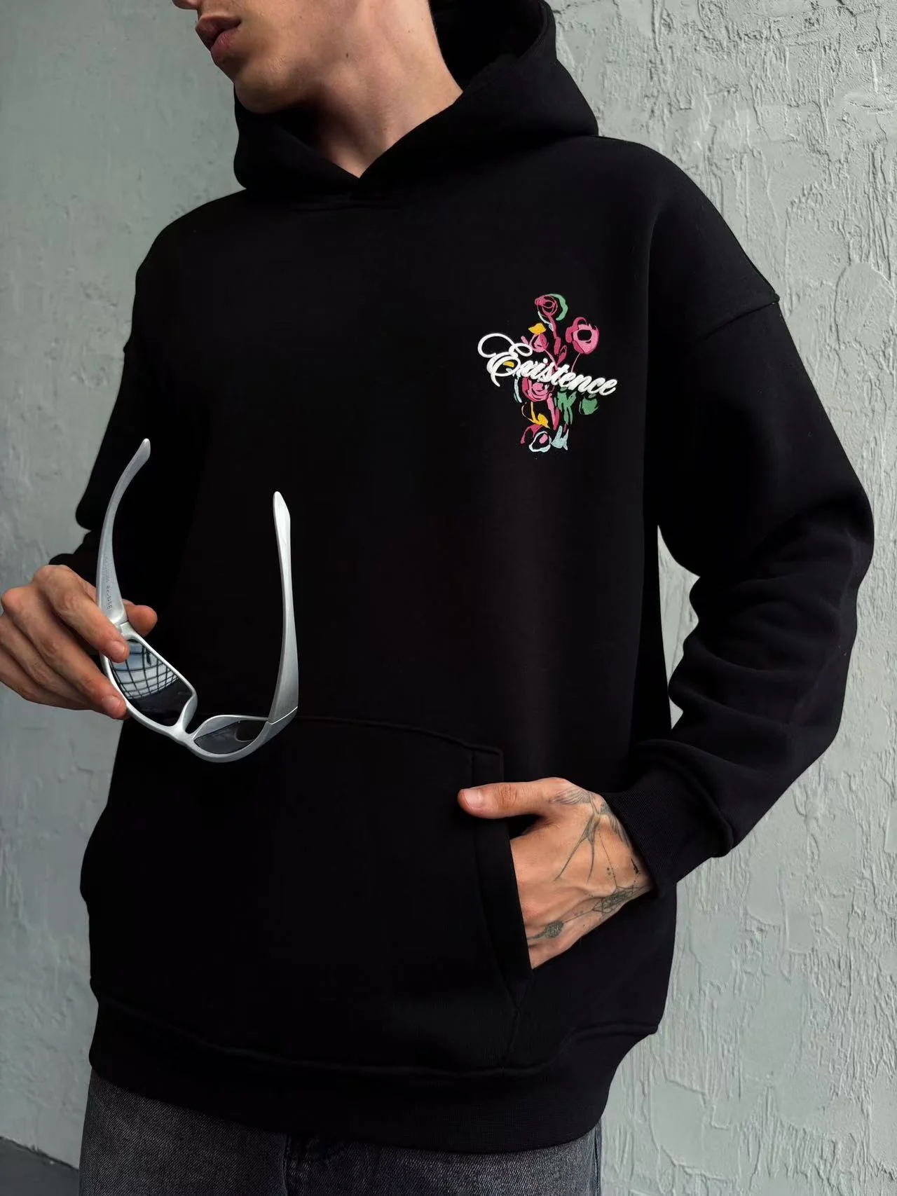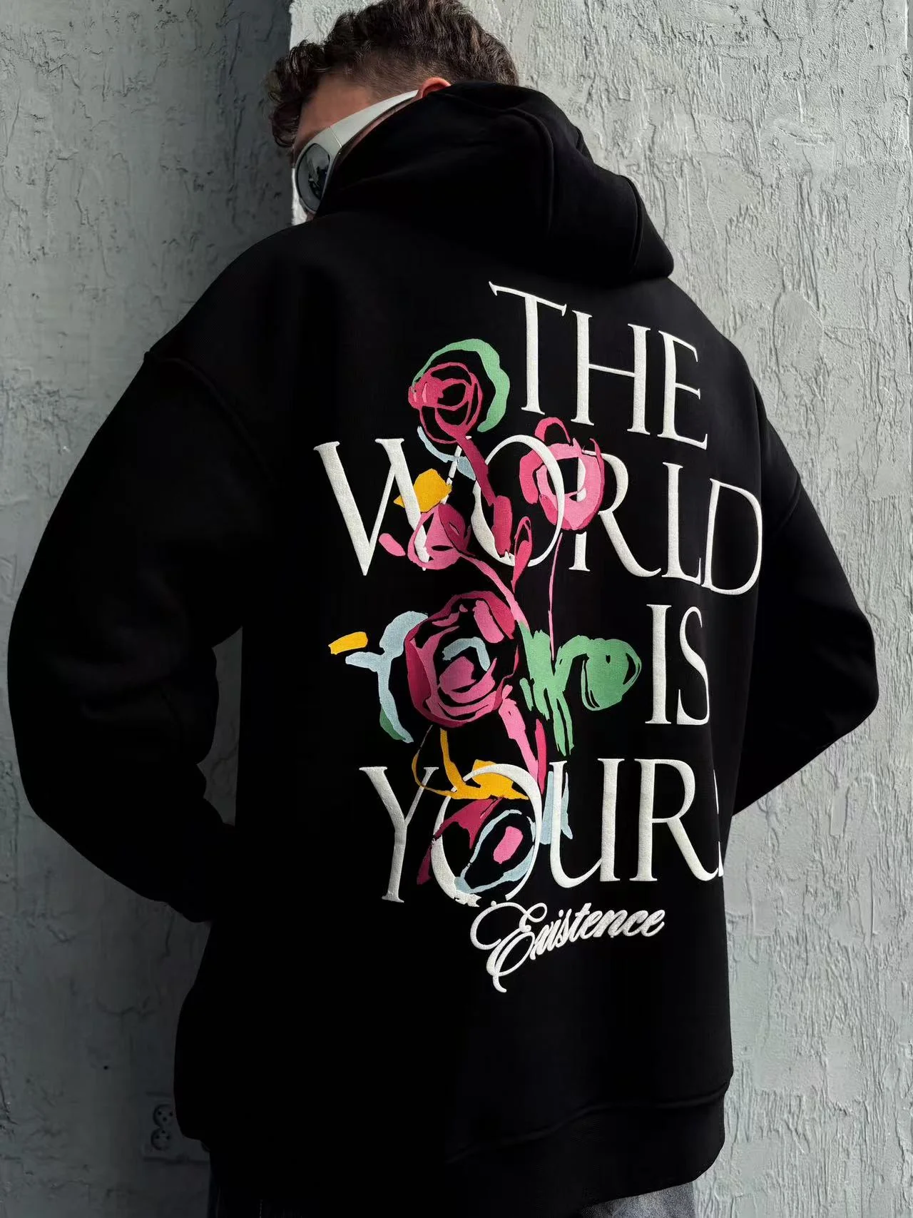 Sweat à capuche imprimé noir