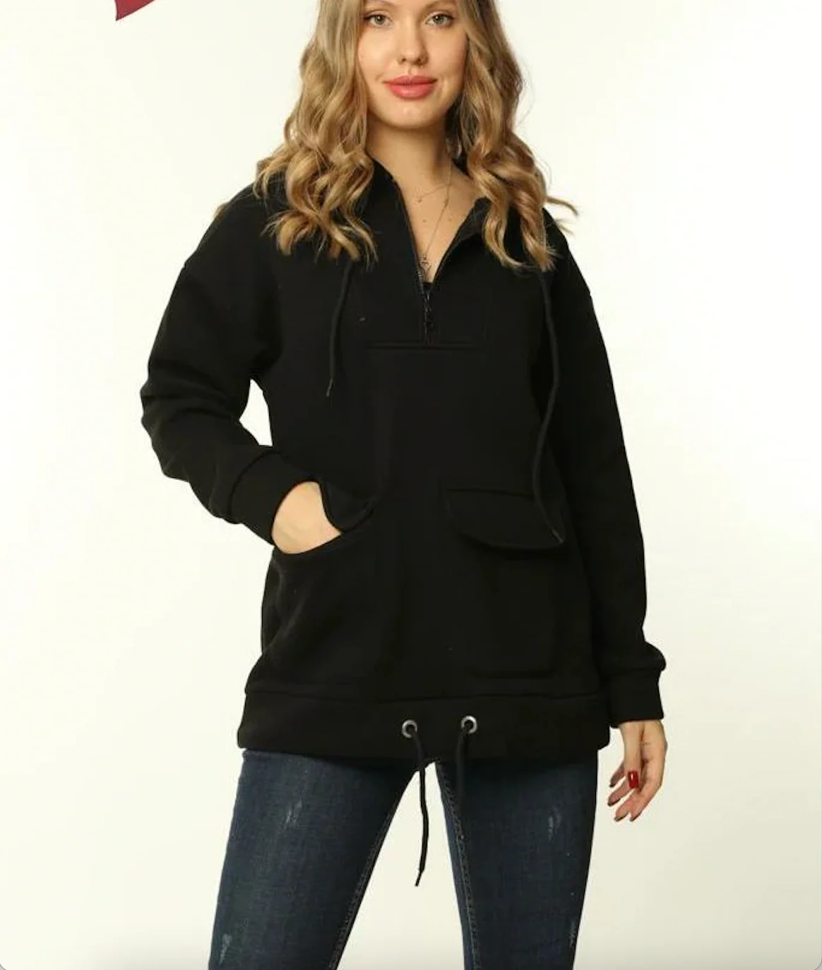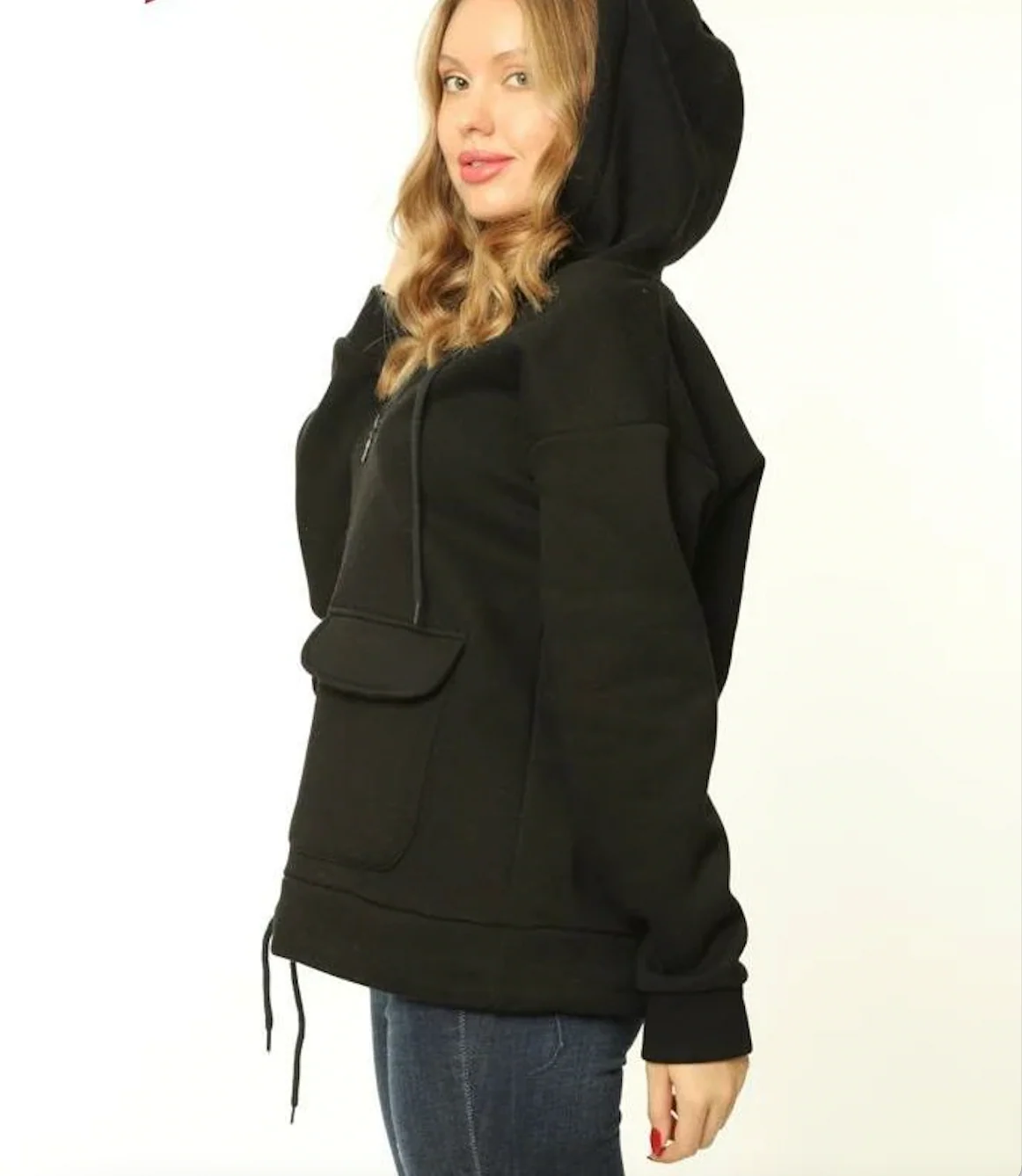 Sweat à capuche Noir, manches longues, poche à l’avant