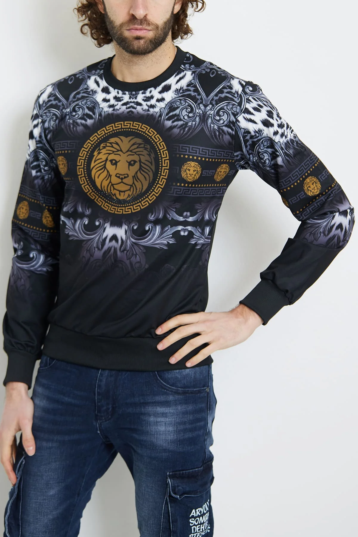 Sweat motif tête de lion doré