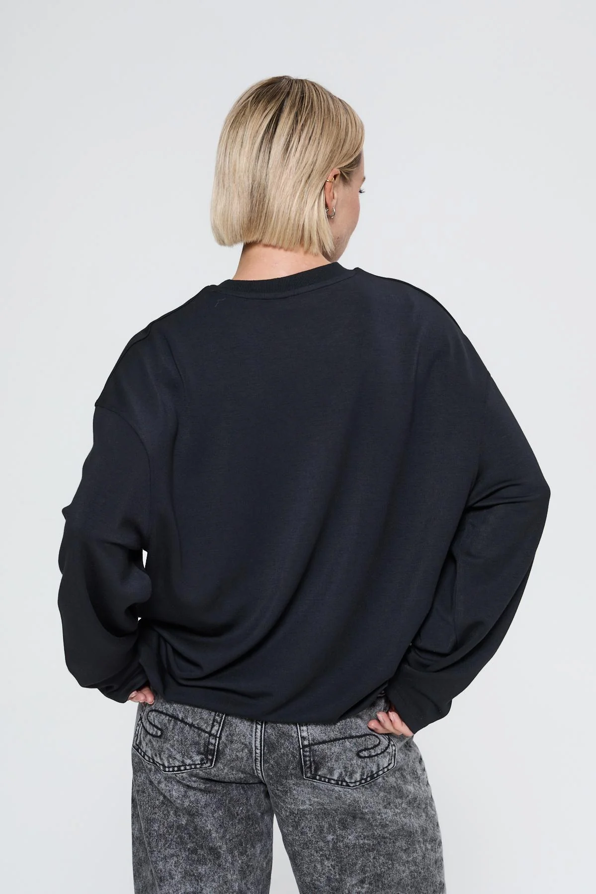 Sweat à coupe loose incarne une féminité assumée et contemporaine. Conçu dans un mélange doux et fluide de polyester, élasthanne et modal, il allie confort, souplesse et légèreté.