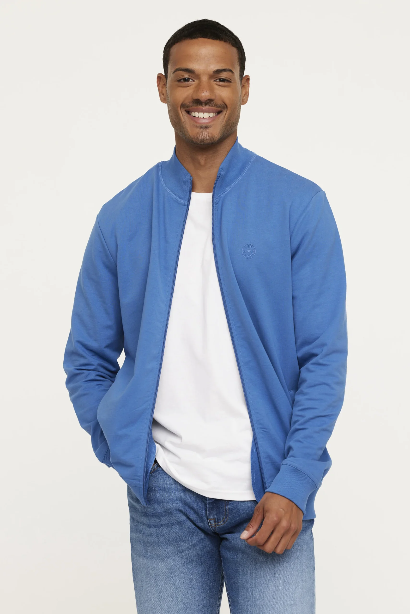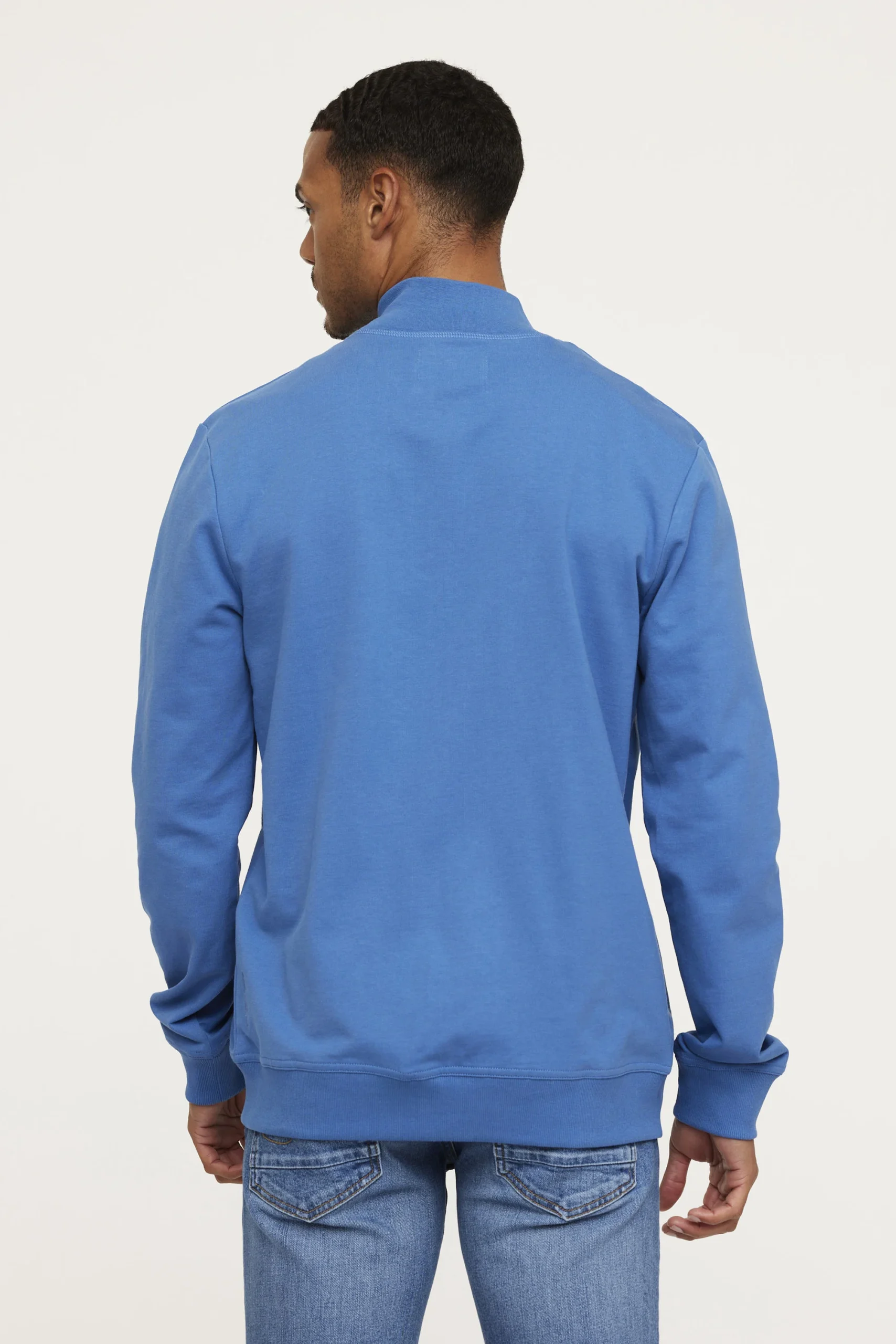 Sweat basique zippé, col cheminée, manches longues en molleton de coton doux à l’intérieur et print poitrine. Contient du coton organique