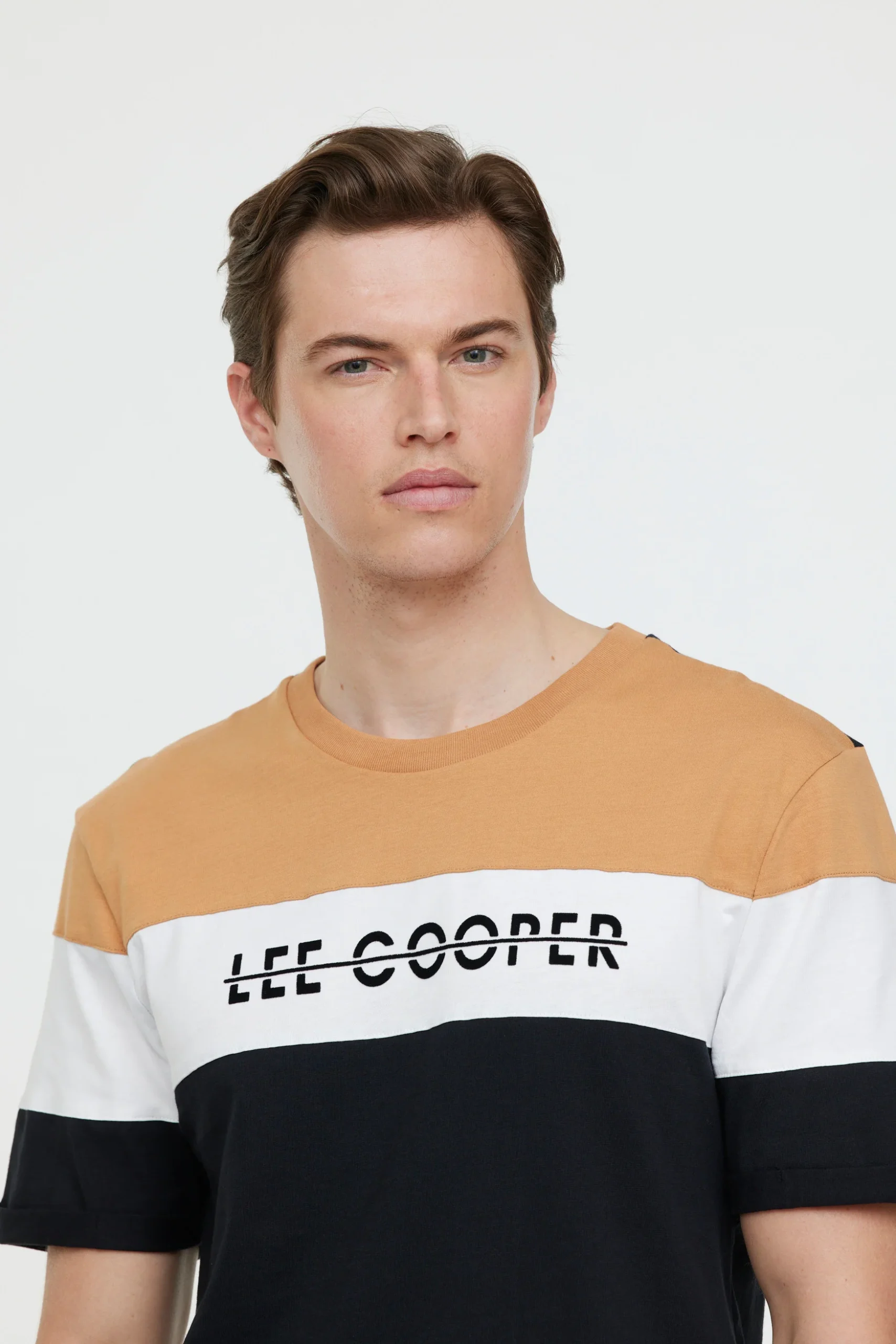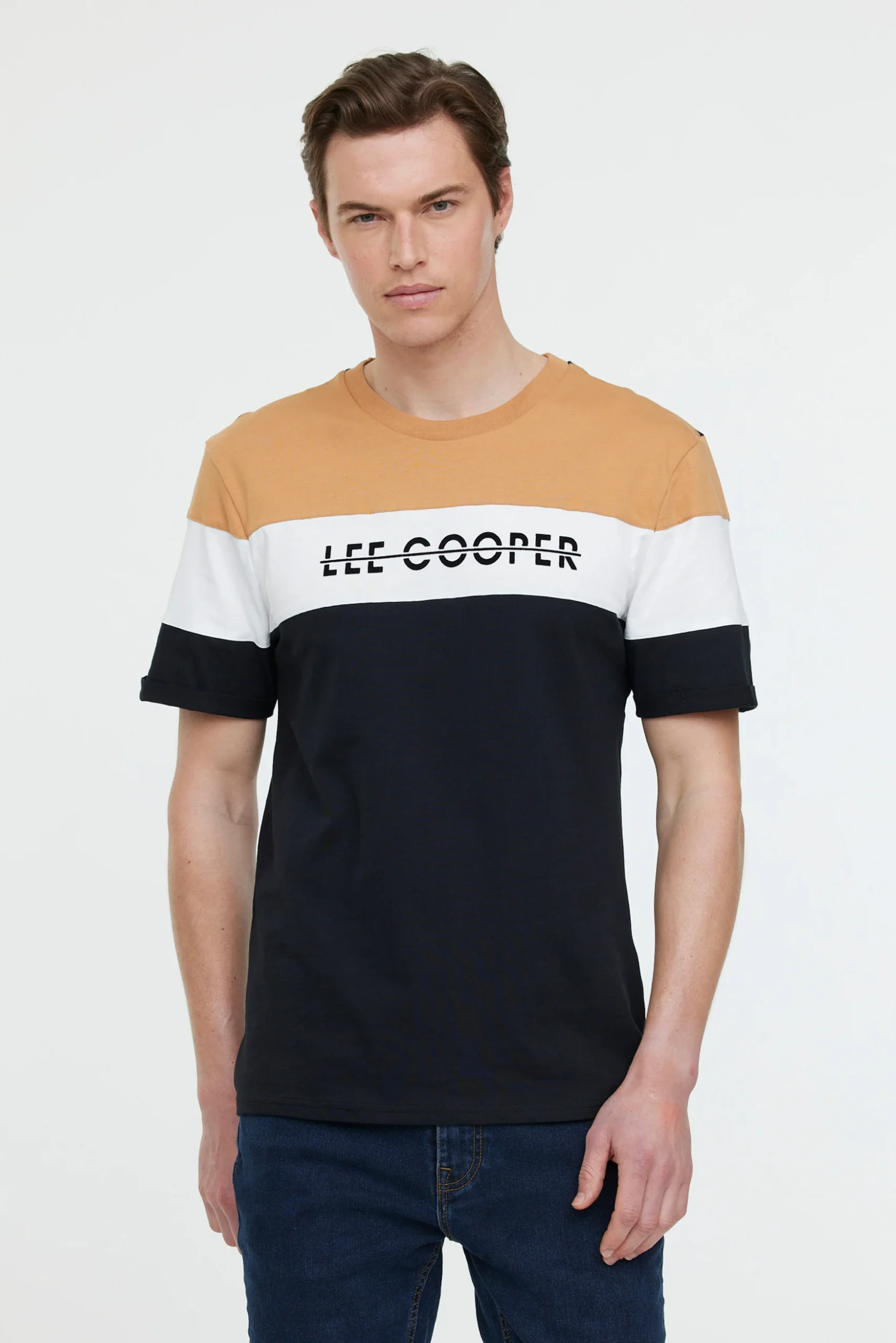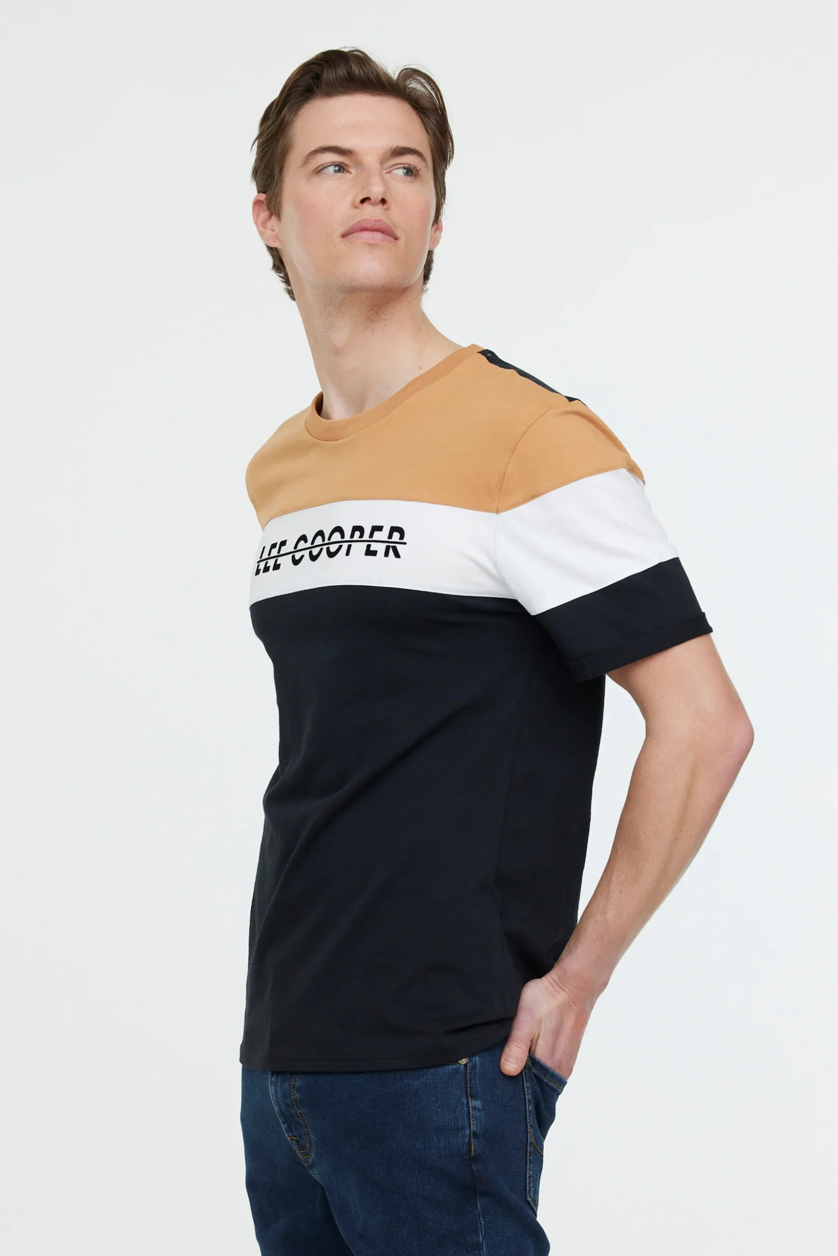 T-shirt à découpes manches courtes avec flocage Lee Cooper poitrine Le mannequin mesure 1.85 cm et porte la taille M