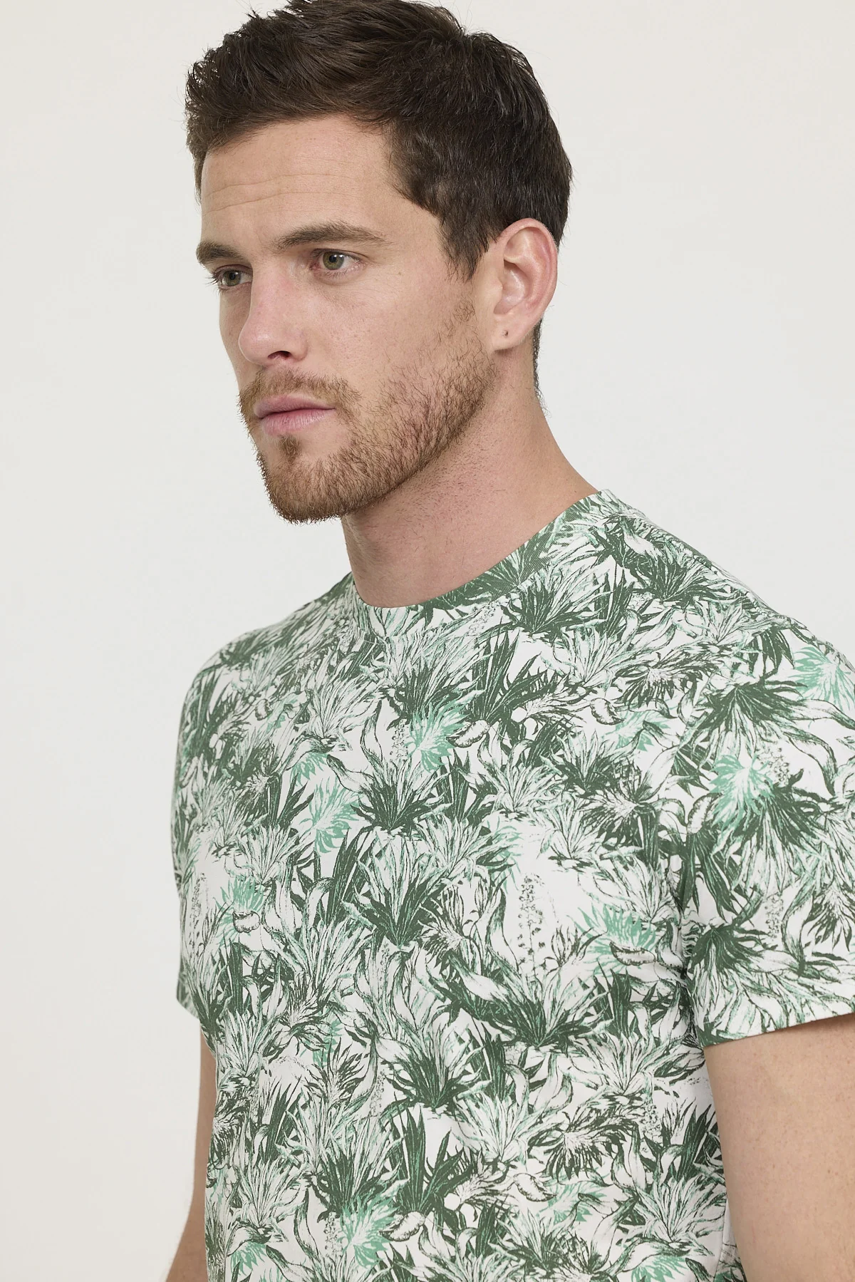 T-shirt à col rond et manches courtes, avec un imprimé graphique « feuillages ». Sa coupe regular lui confère un style intemporel.