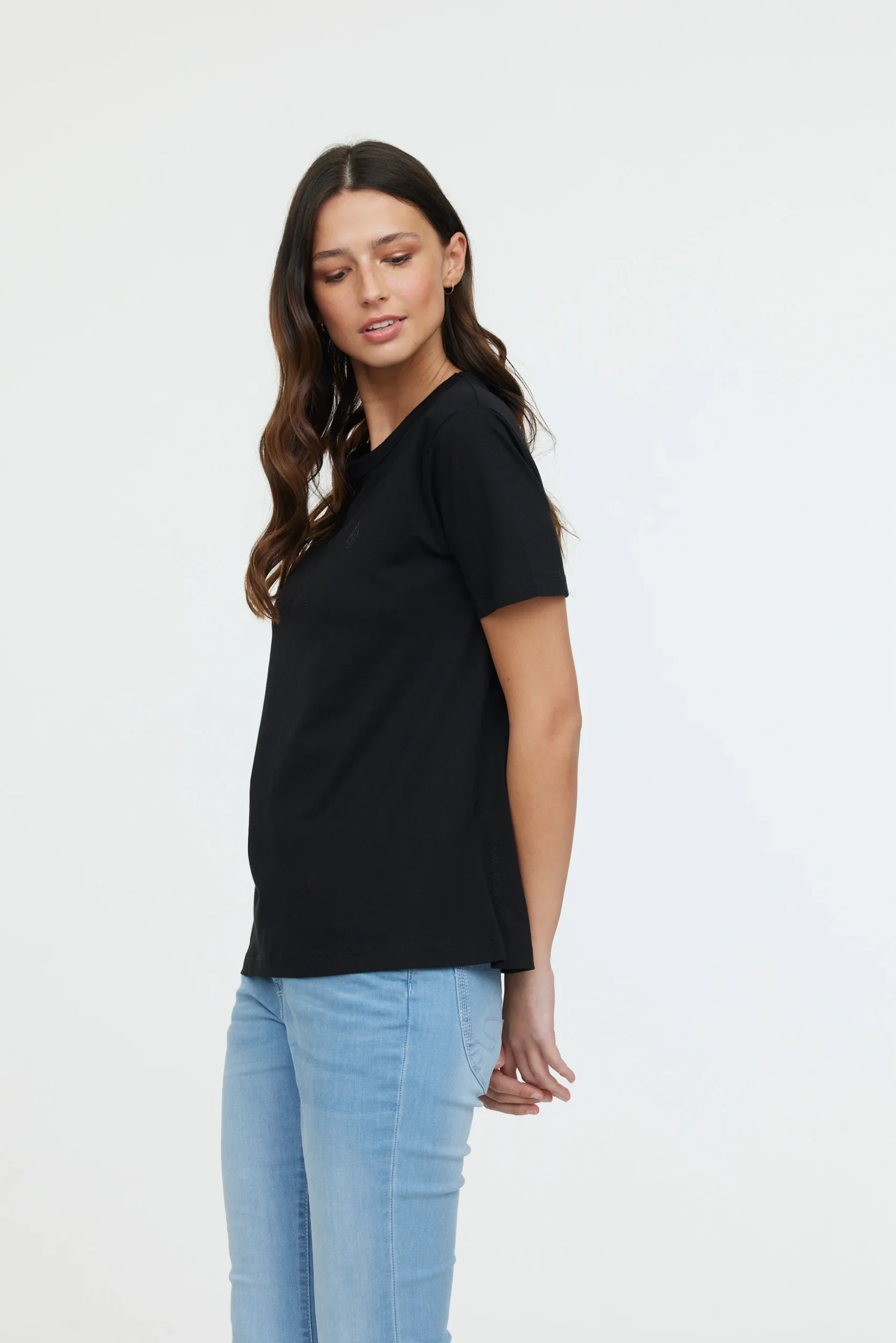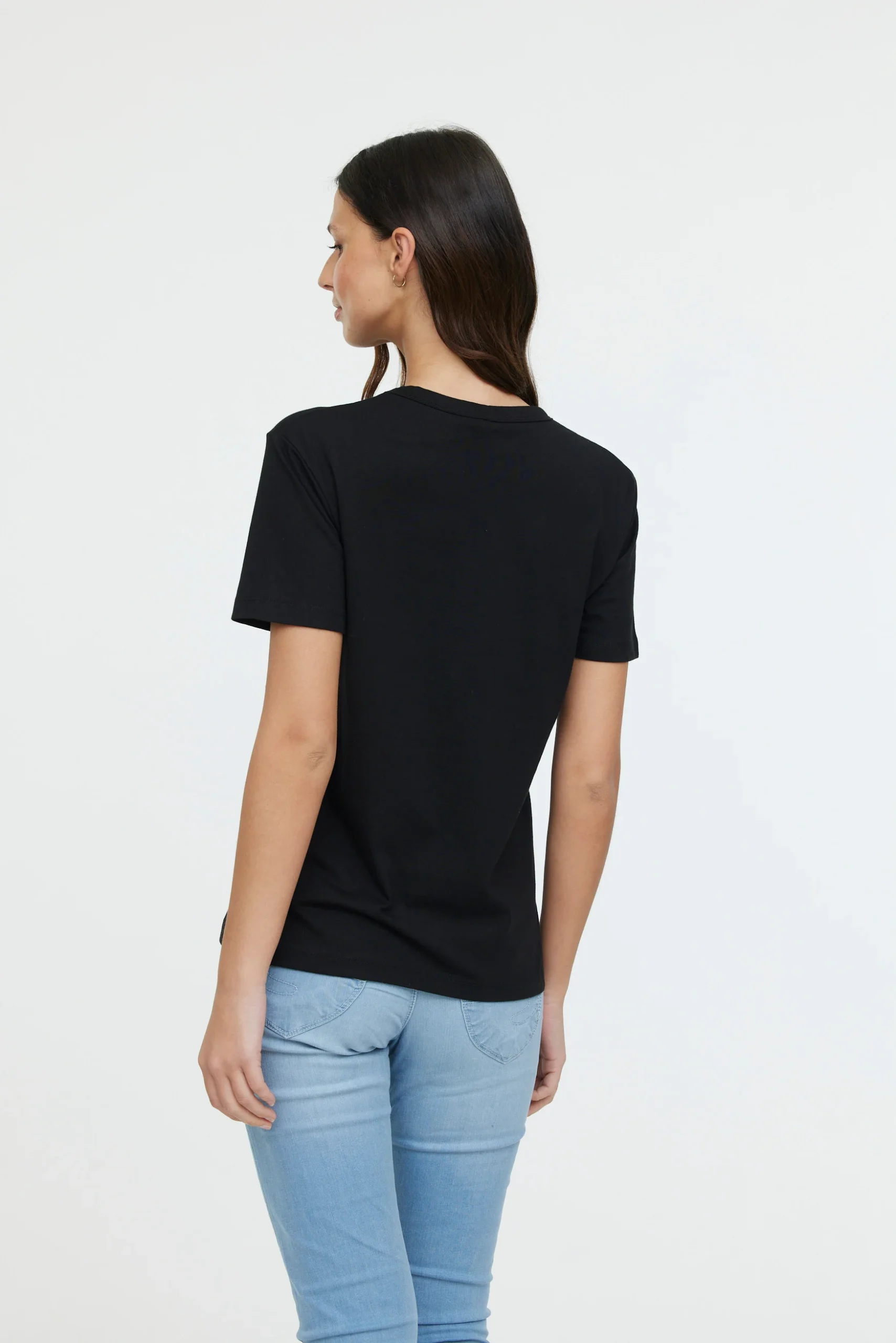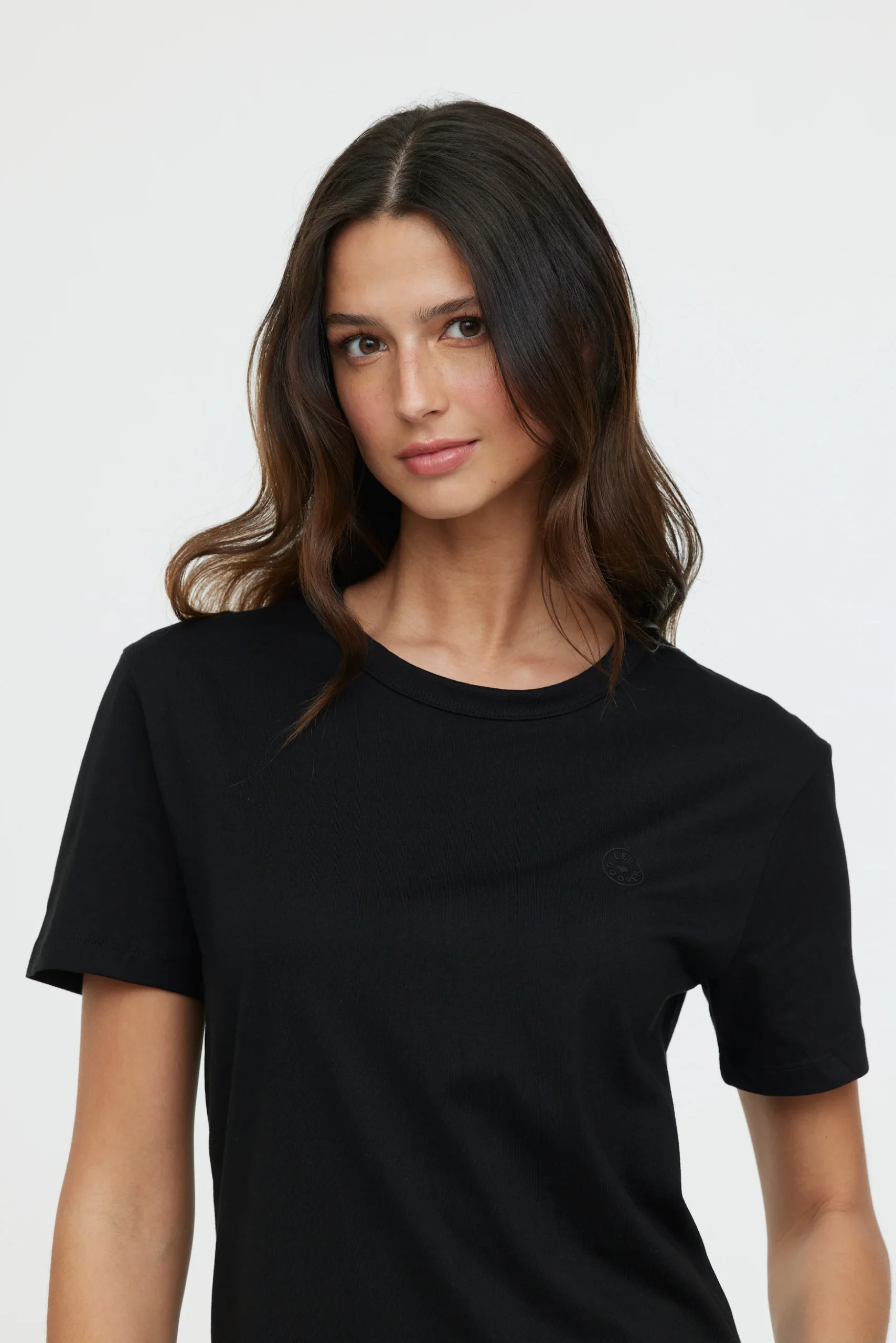 T-shirt basique manches courtes col rond en coton bioLe mannequin mesure 1.70 cm et porte la taille S