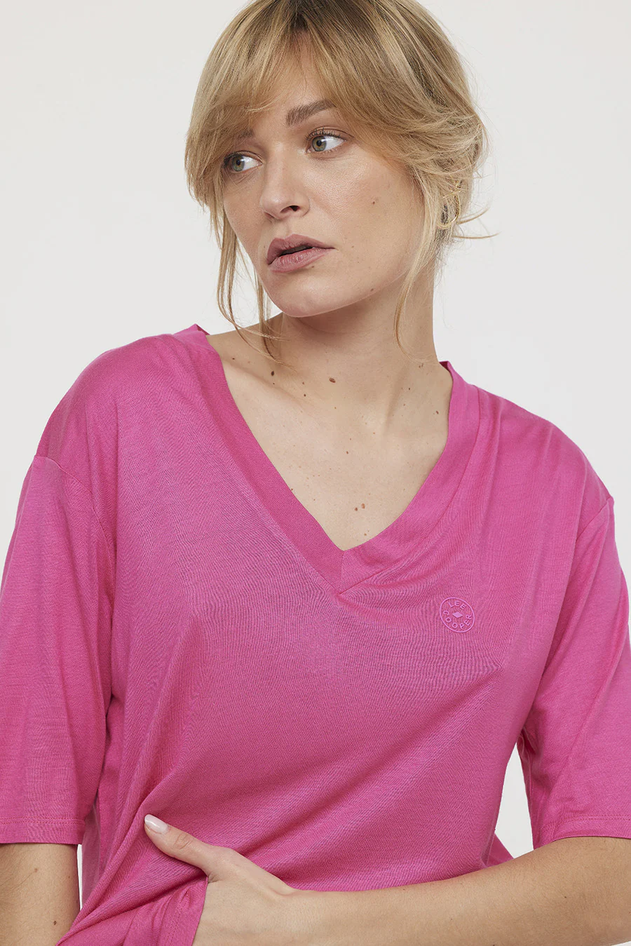 T-shirt basique manches courtes col V en viscose recyclée.