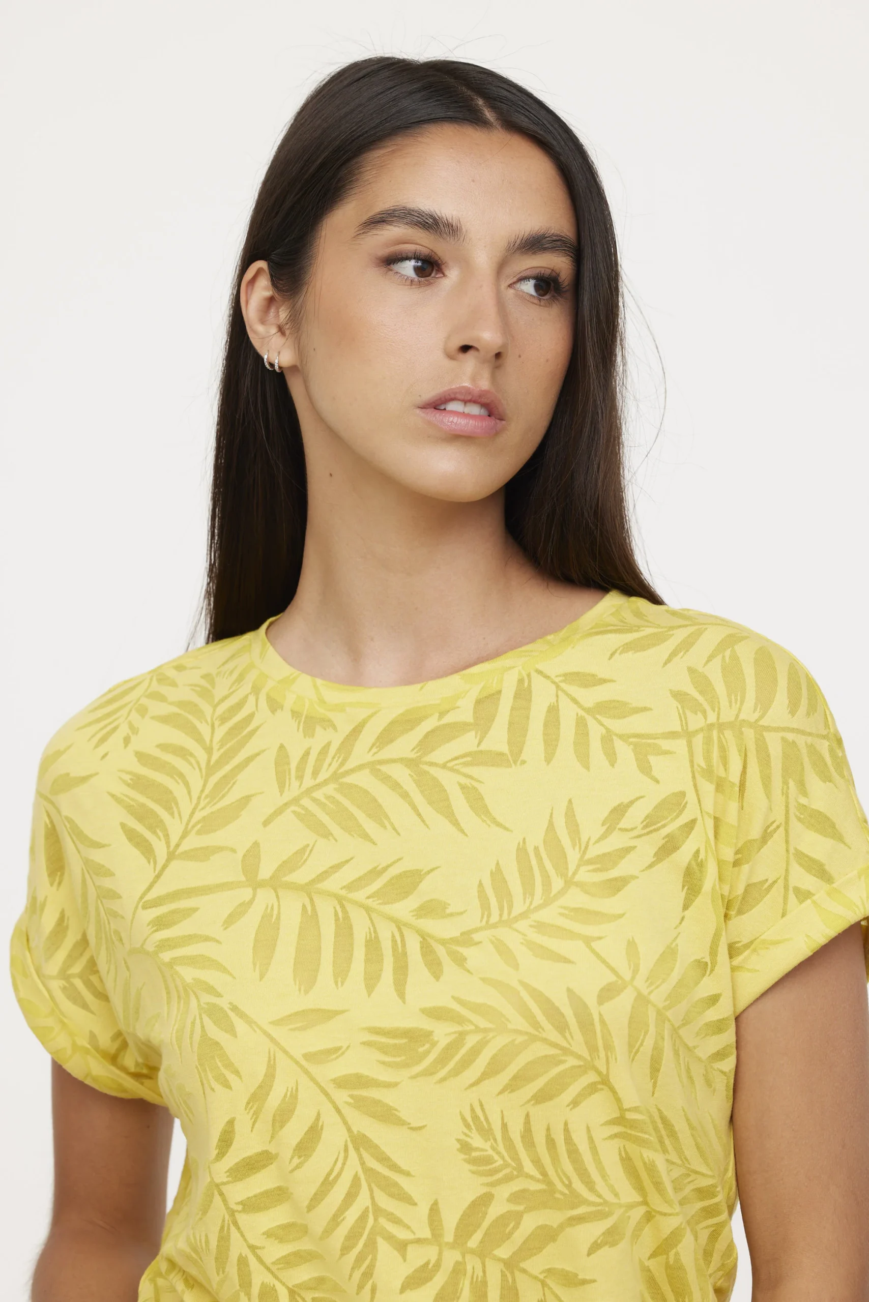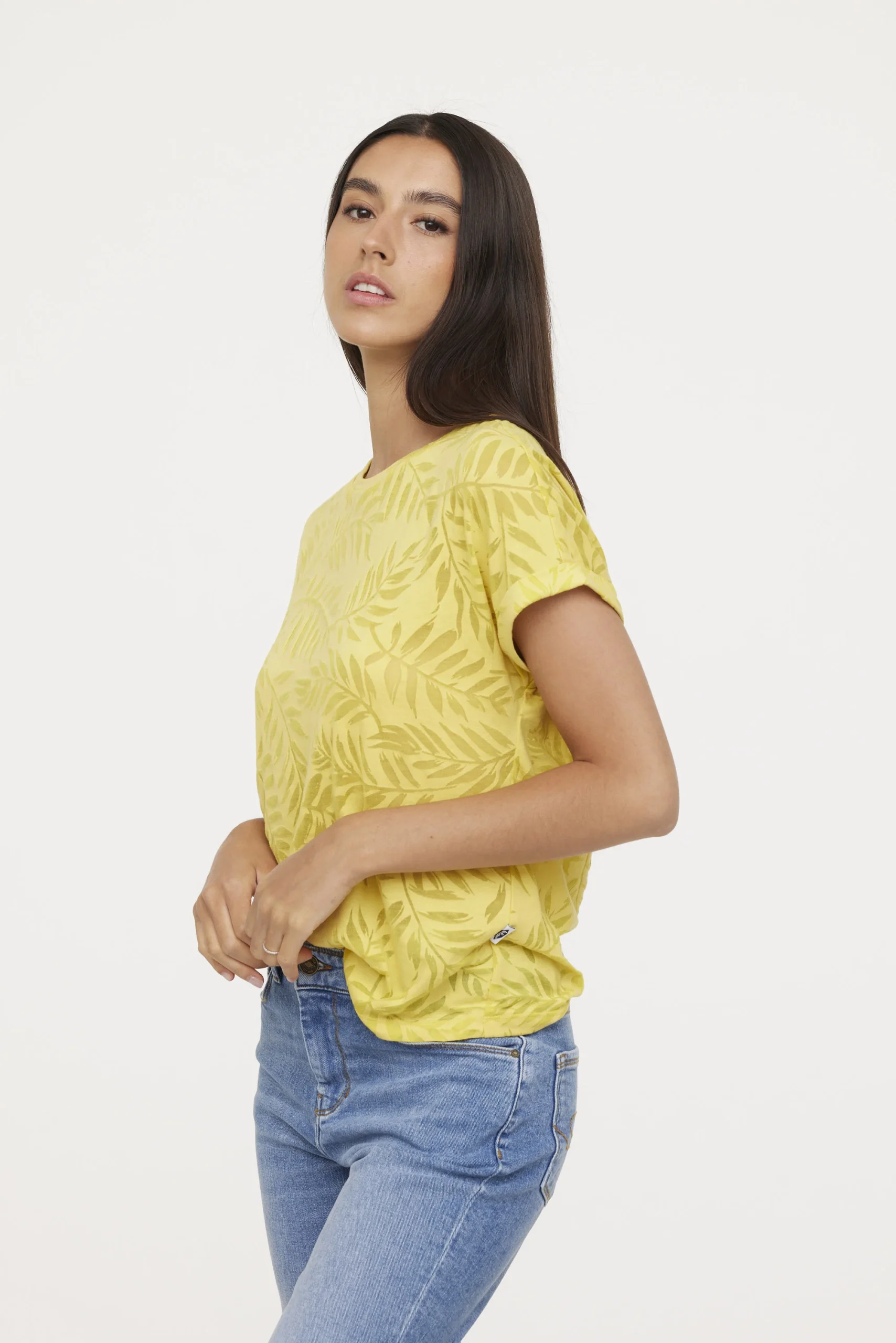 T-shirt fluide manches courtes effet dévoré en forme de feuilles tropicales