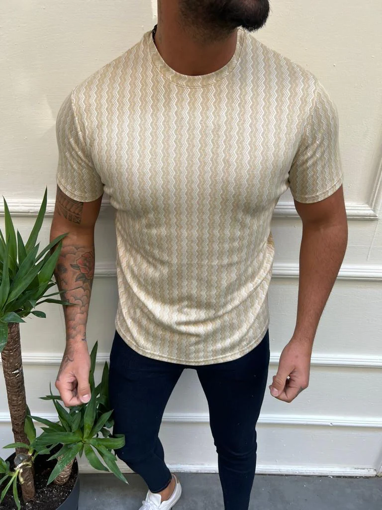 T shirt stylé à manches courtes homme avec rayure Modèle : LM461 Tshirt manches courtes Motif rayures légères tendance Coupe Classique Etiquette d’authenticité Taille et Coupe Taille du mannequin 1m85 Portant du M Prenez votre taille habituelle Composition et entretien 100% Polyester