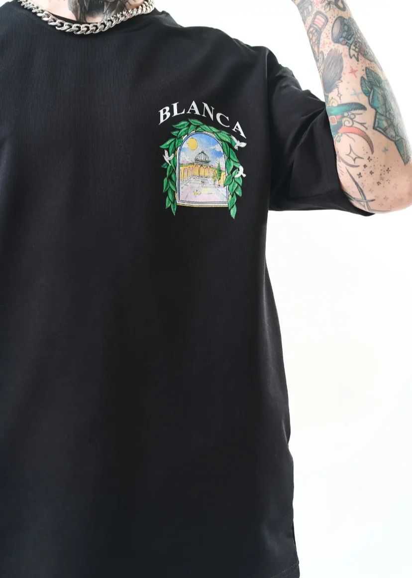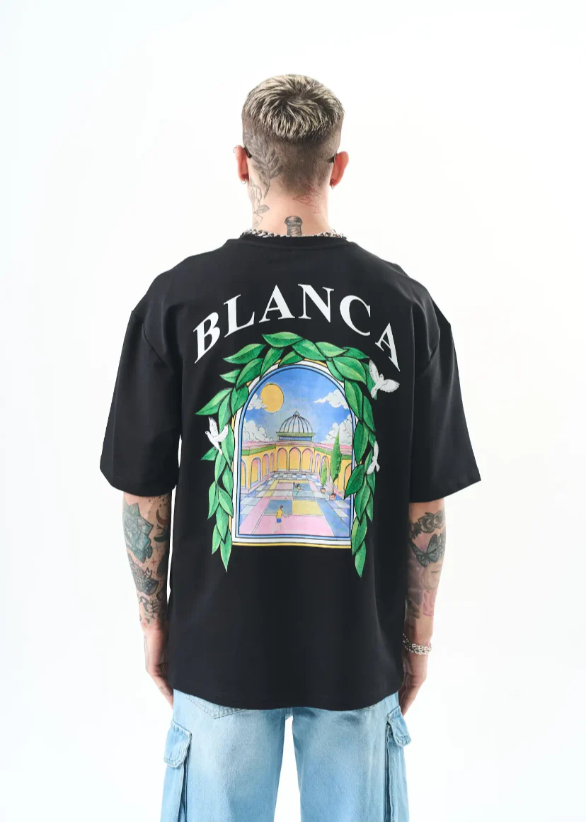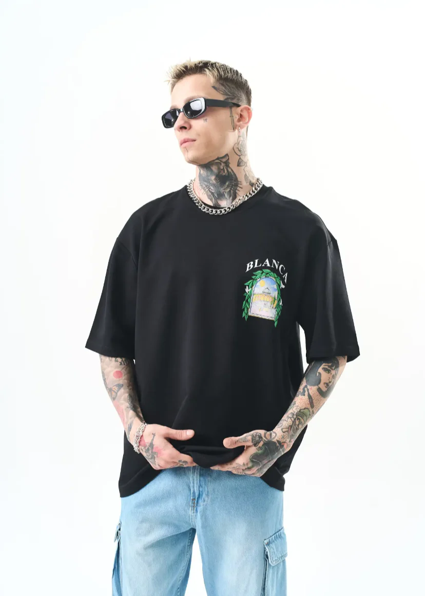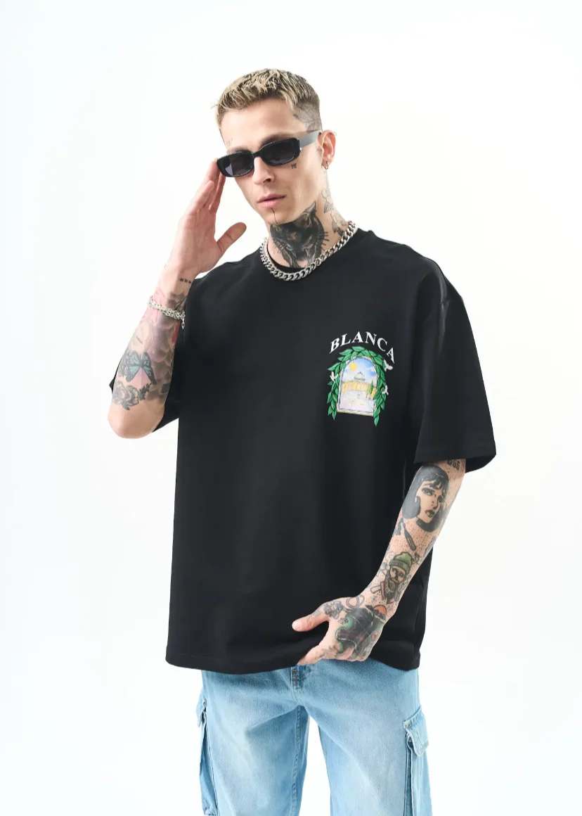 T-shirt Blanca oversize homme imprimé arcade végétale – style artistique 1581
