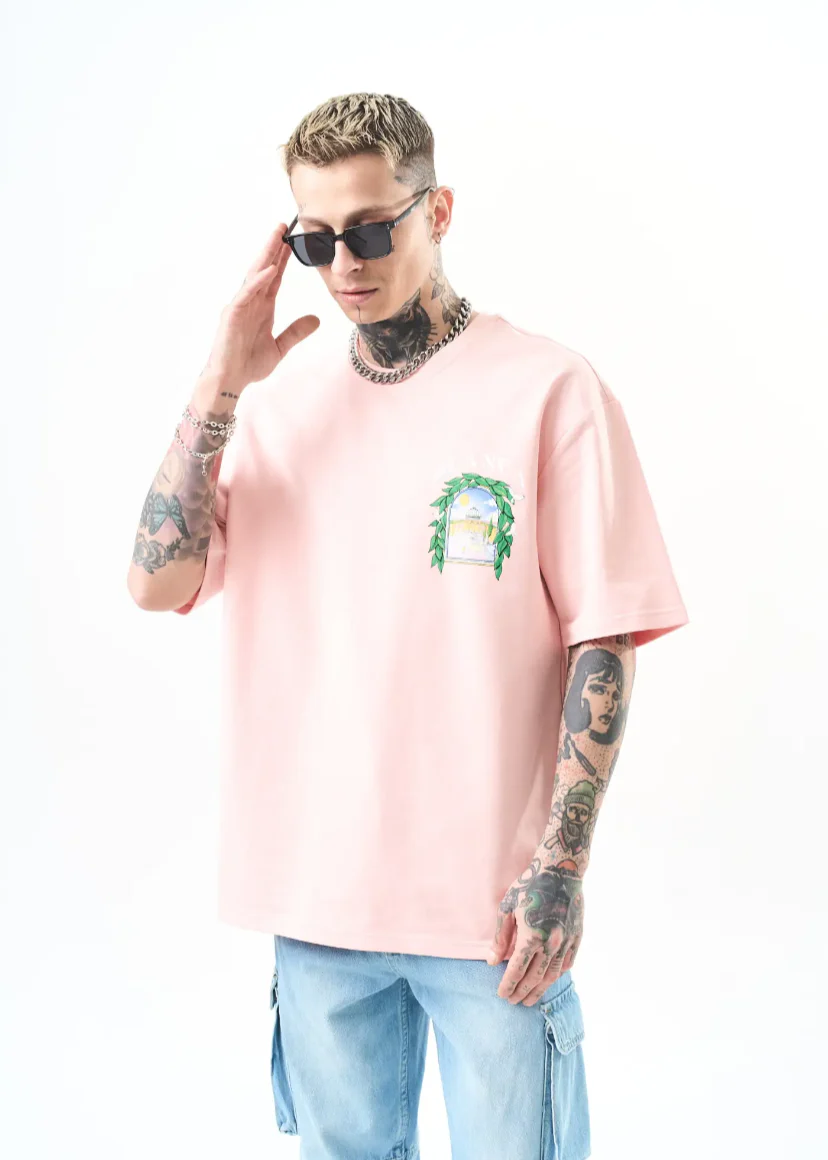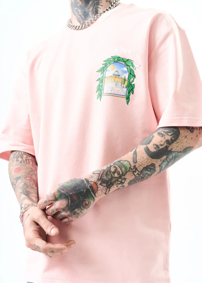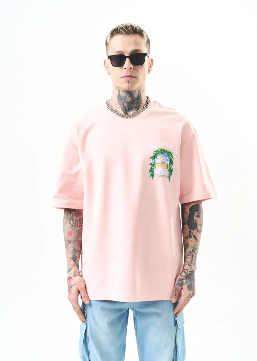 Un t-shirt oversize à l’identité artistique forte. Son imprimé dans le dos représente une scène architecturale encadrée de feuillage, avec une ambiance méditerranéenne et onirique. Idéal pour ceux qui veulent allier confort et originalité avec une touche d’art.