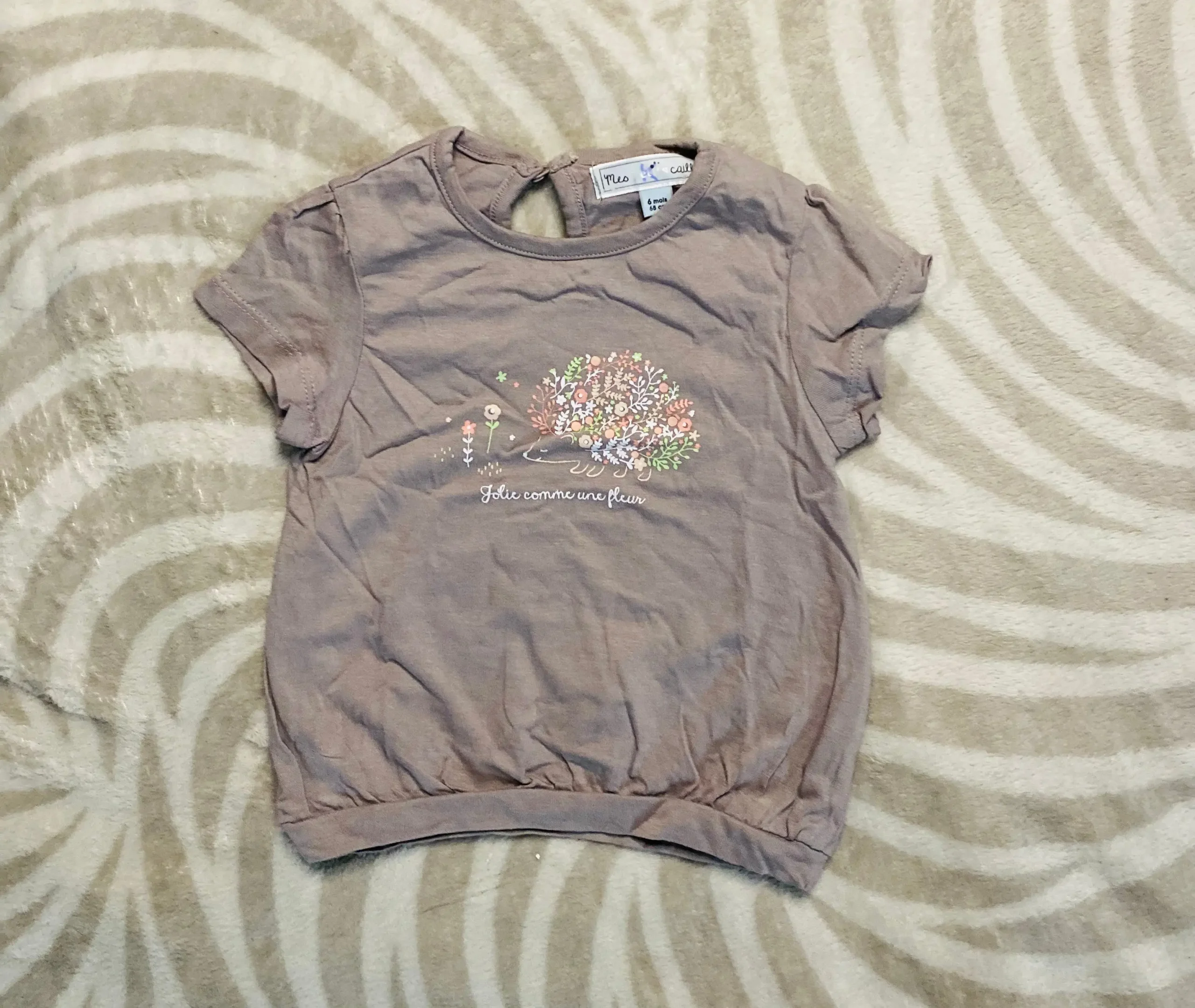 T-shirt Fille Taupe 6 Mois – Hérisson Fleurie – Mes Petits Cailloux