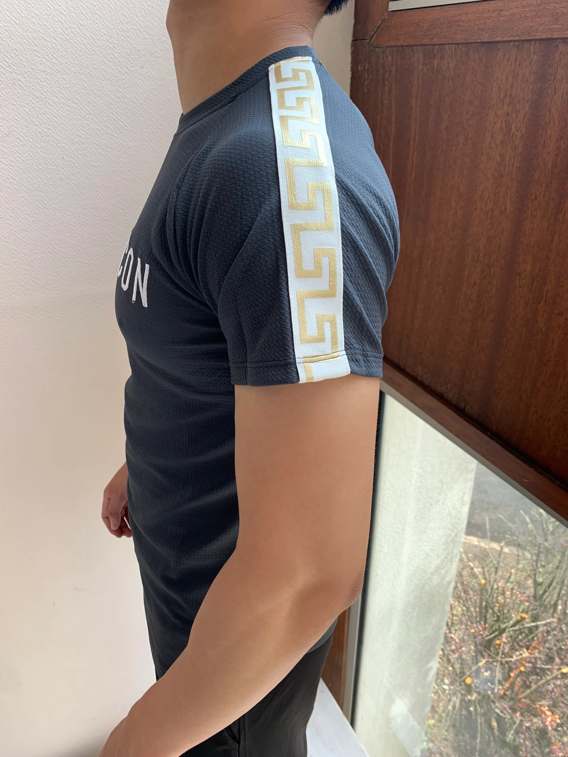T-shirt gris foncé manches courtes col rond texte Icon fashion homme parfait pour l’été