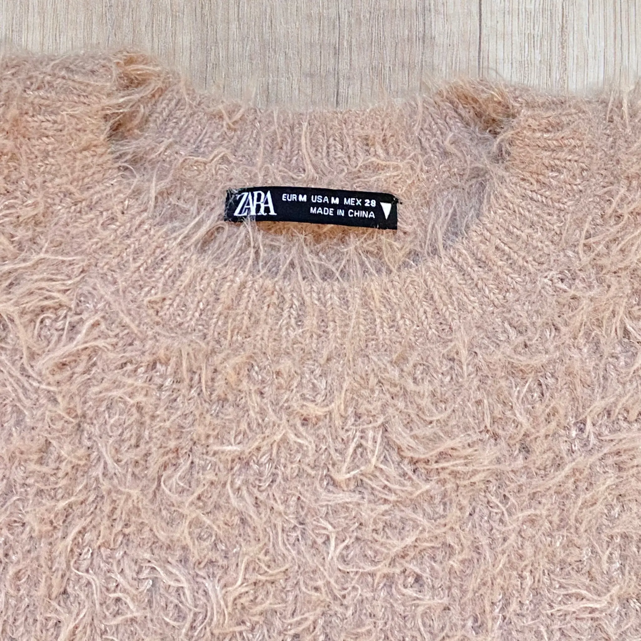 Top femme Zara M taupe – Tricot effet poils / chenille