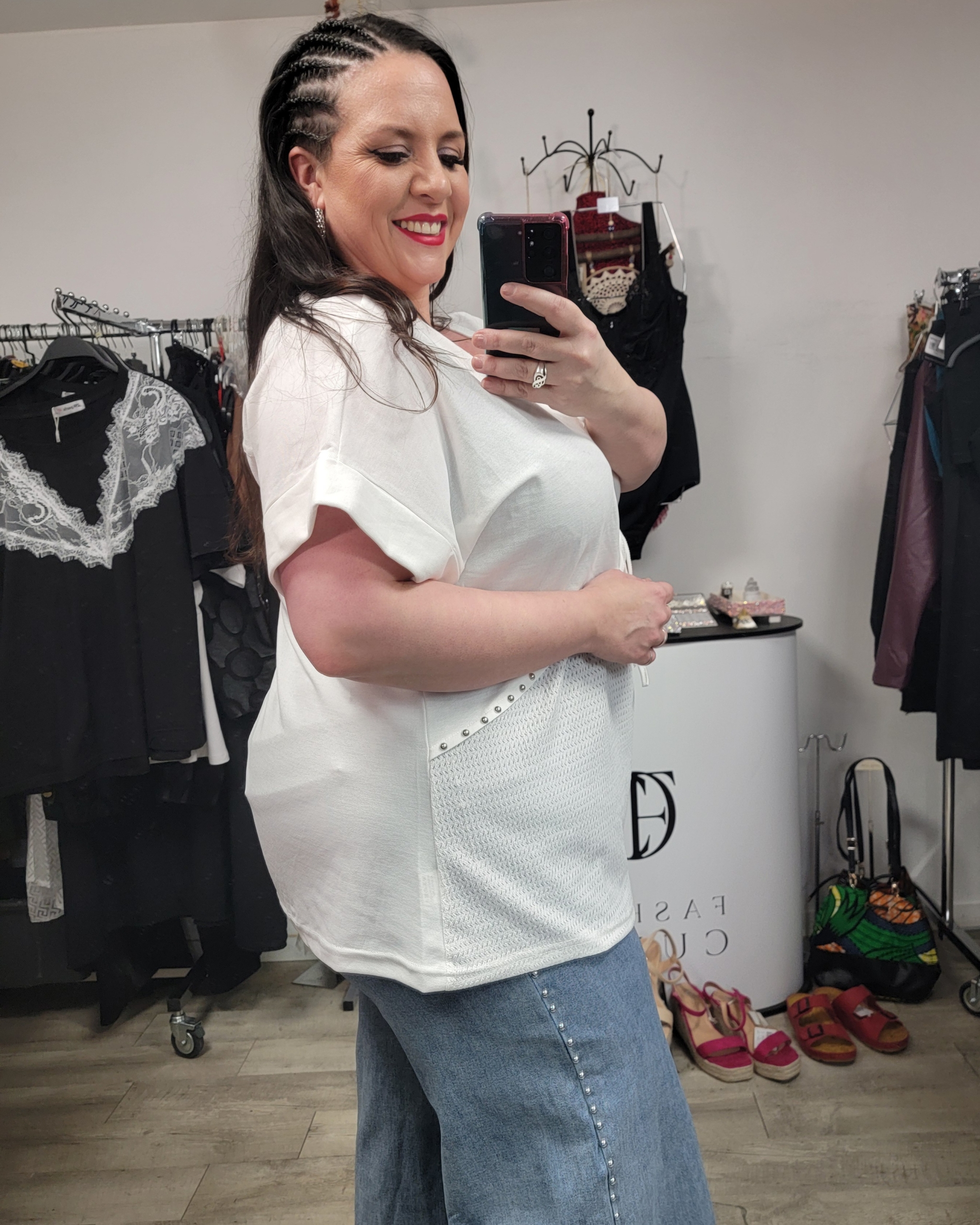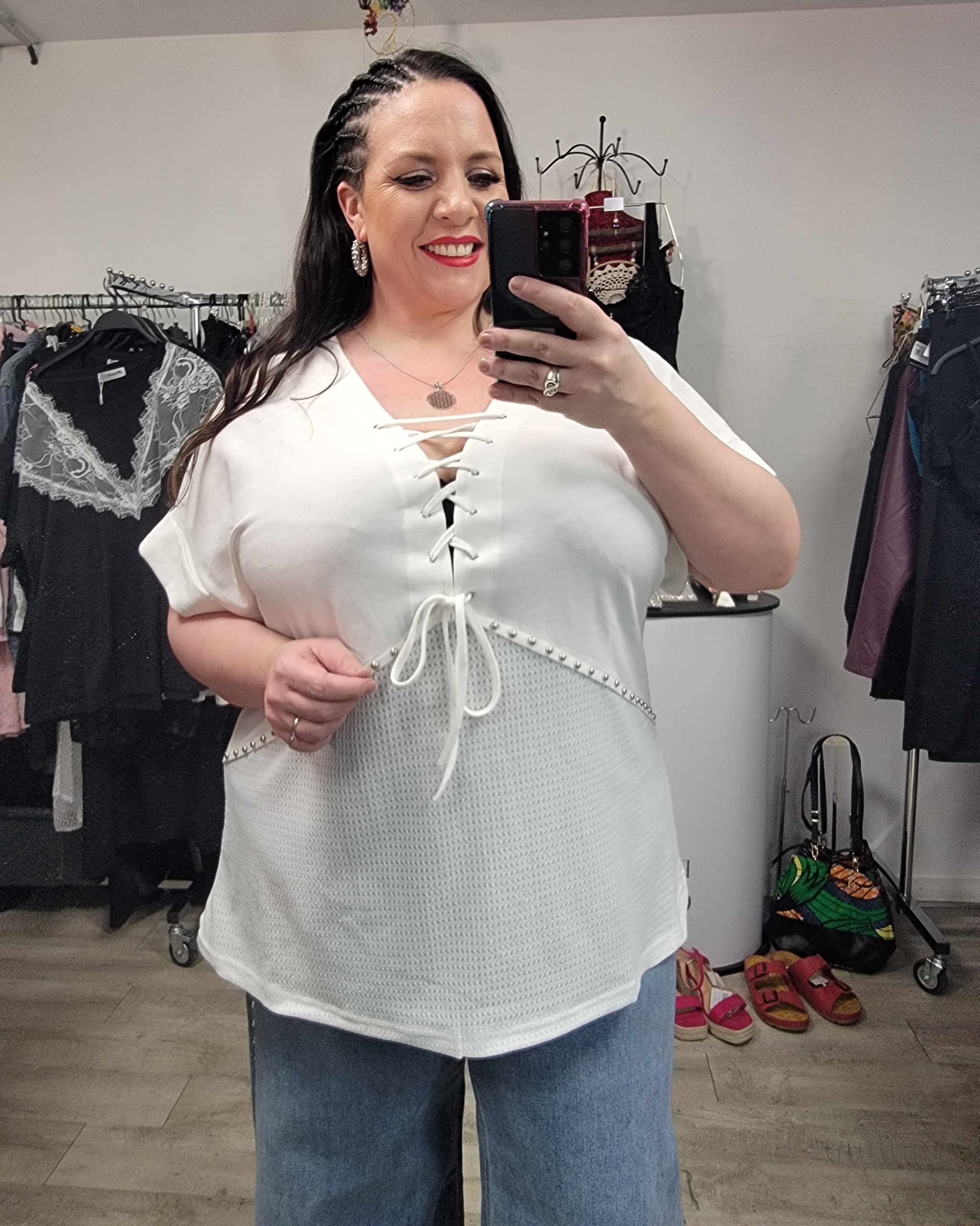 Révélez votre audace avec élégance. Cette tunique grande taille marie subtilement deux matières pour un jeu de textures moderne et flatteur. Son décolleté laçage apporte une touche de sensualité assumée, tout en restant chic et facile à porter au quotidien. Bi-matière : contraste de matières pour un effet visuel sophistiqué et tendance. Décolleté laçage : ajustable selon vos envies, il sublime la poitrine et attire les regards avec subtilité. Coupe fluide : pensée pour épouser vos courbes sans jamais les contraindre, du 46 au 60. Coloris intemporels : disponible en blanc et noir, à mixer selon votre humeur. Pourquoi on l’adore ? Parce qu’elle…