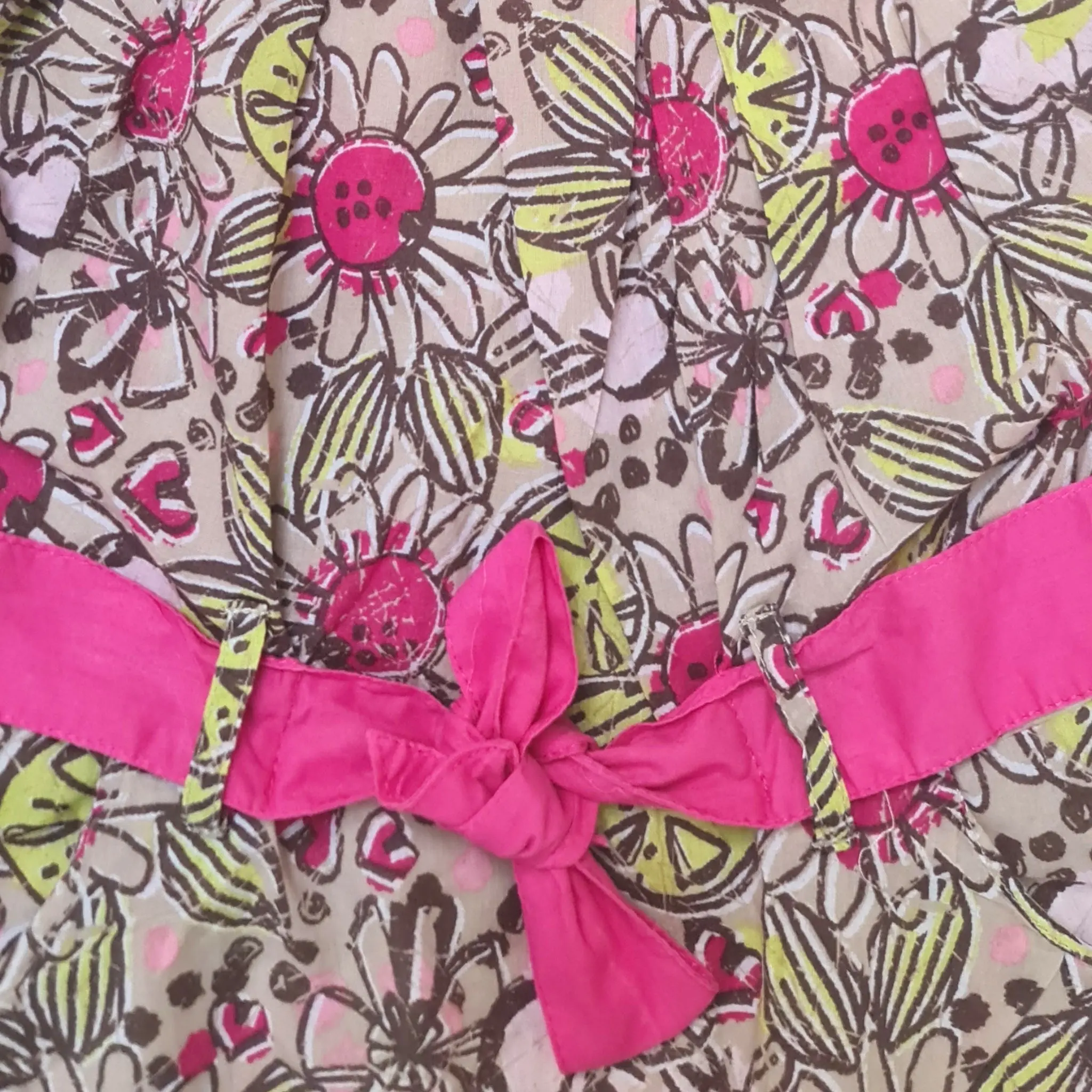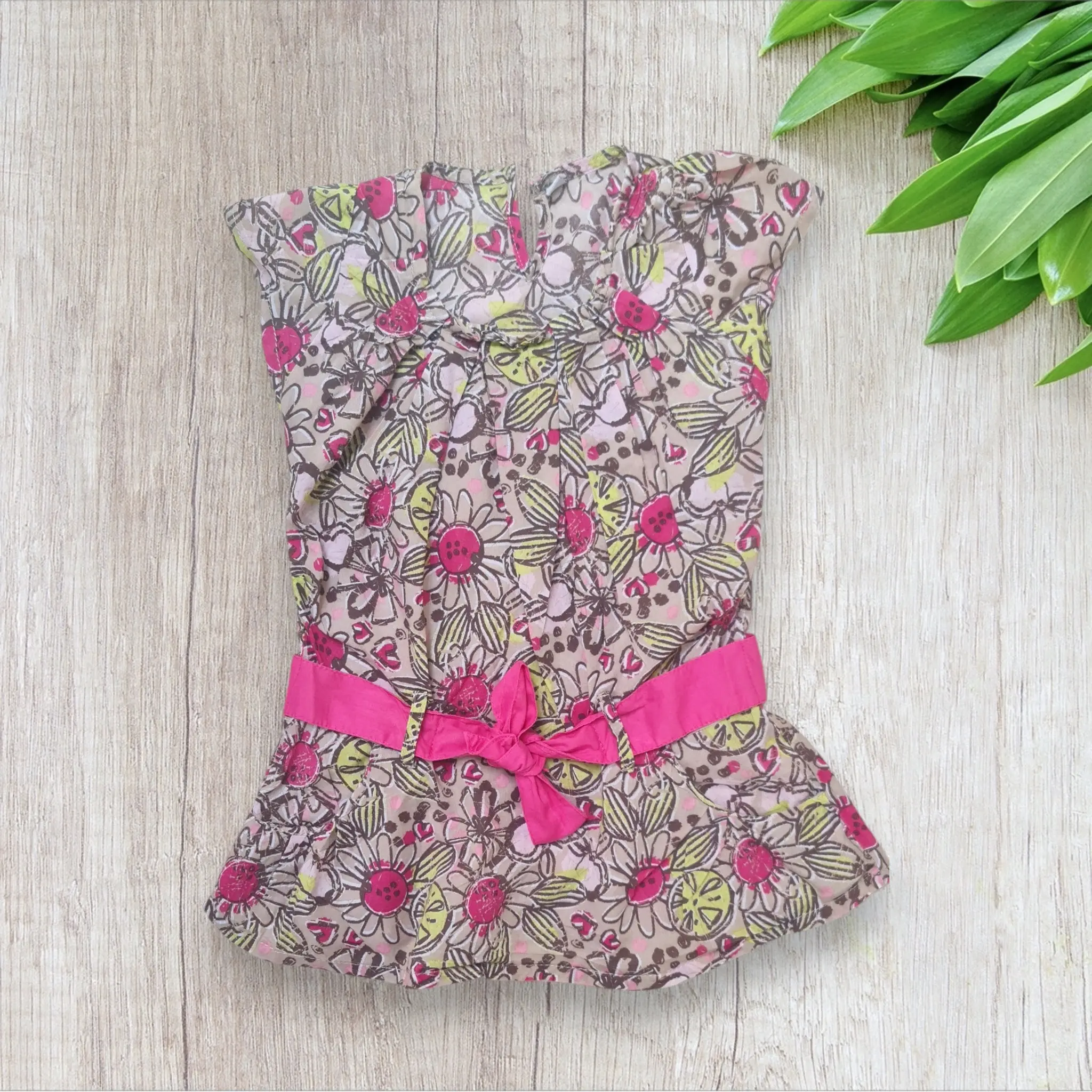 Tunique fille 4 ans – Motif fleuri – Beige & fuchsia – Très bon état
