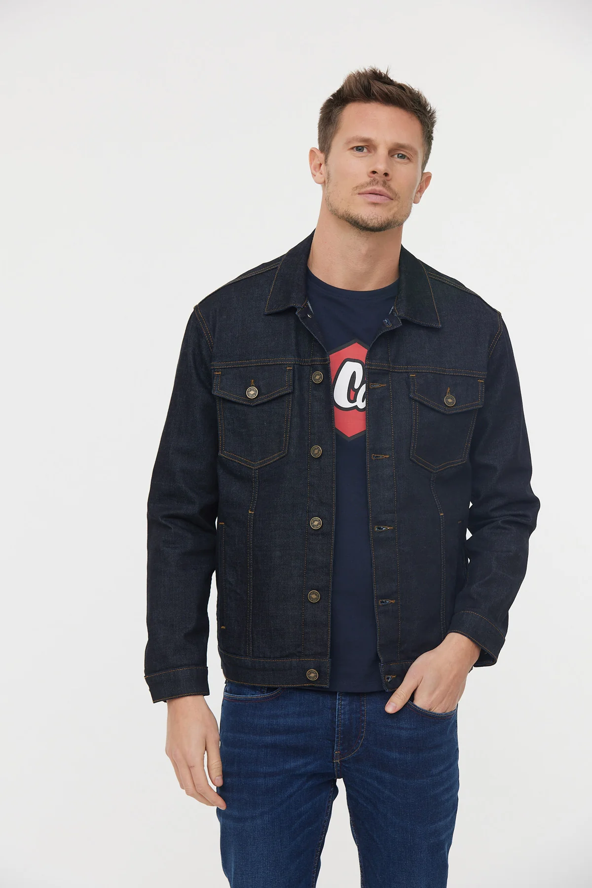 Veste en jean brutLe mannequin mesure 1.85 cm et porte la taille M