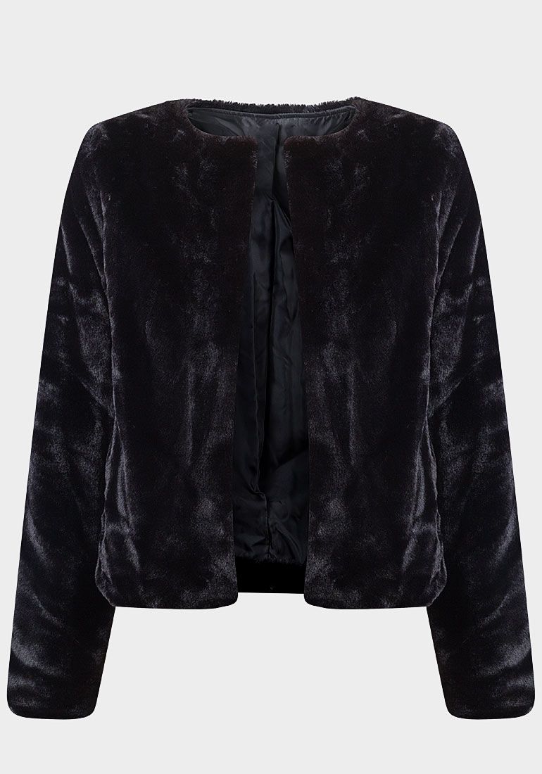 Veste fausse fourrure grande taille Devant ouvert Poches latérales Coupe régulière Entièrement doublée