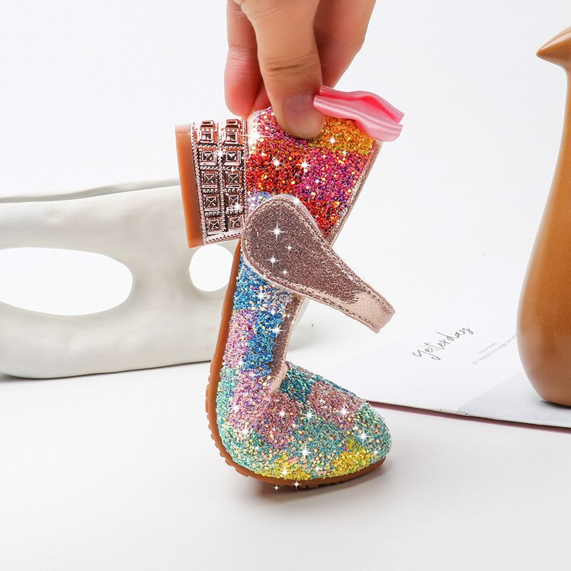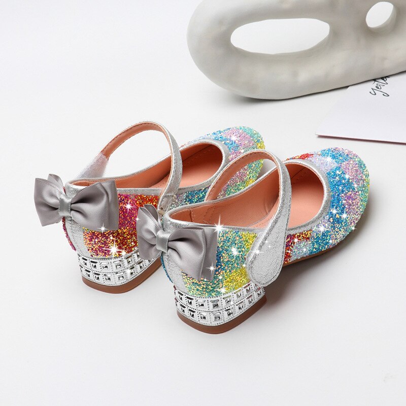 Transformez votre petite fille en une véritable jolie princesse avec ces chaussures décorées de strass arc-en-ciel, idéales pour les grandes cérémonies et les fêtes de déguisement.