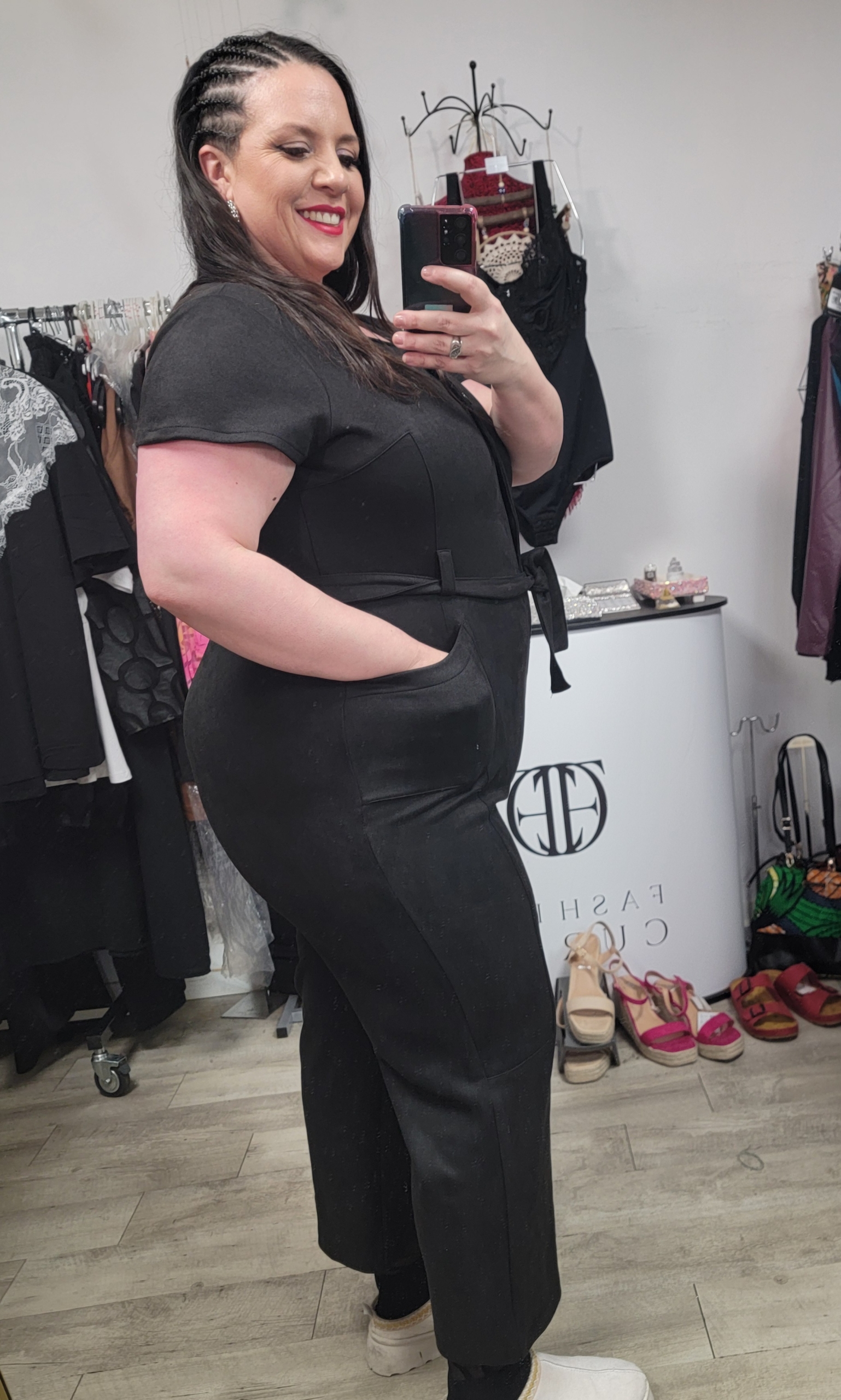 Cette combinaison en suédine noire a été pensée pour sublimer les courbes et affirmer la féminité, tout en offrant un confort inégalé. Sa matière effet daim, douce au toucher, épouse la silhouette sans la contraindre, pour un look chic et audacieux en toute simplicité.