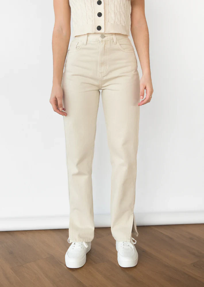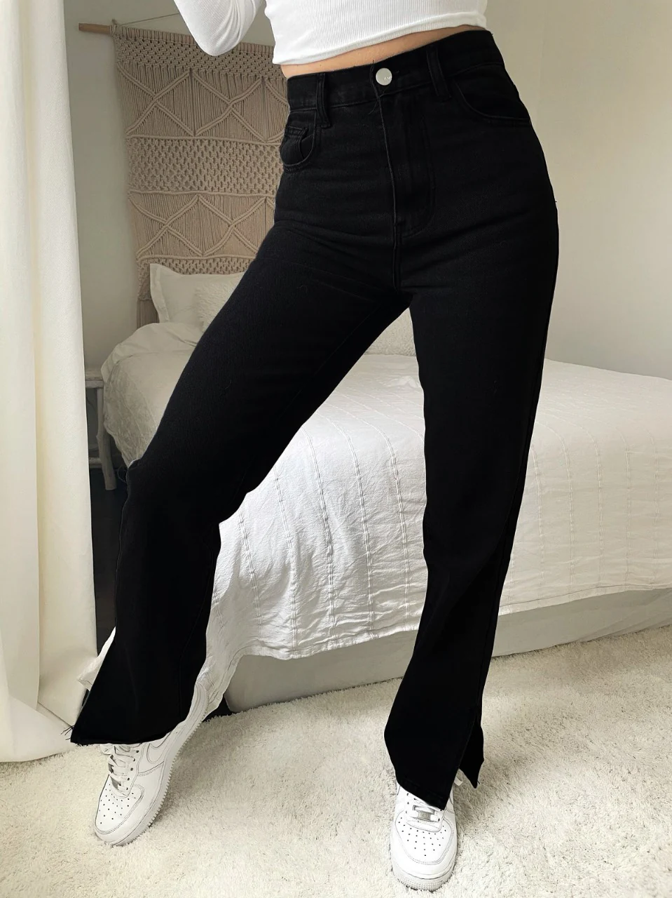 ✔️ Pantalon – Coupe Droite, élastiqué, taille haute, fendu sur les côtés
