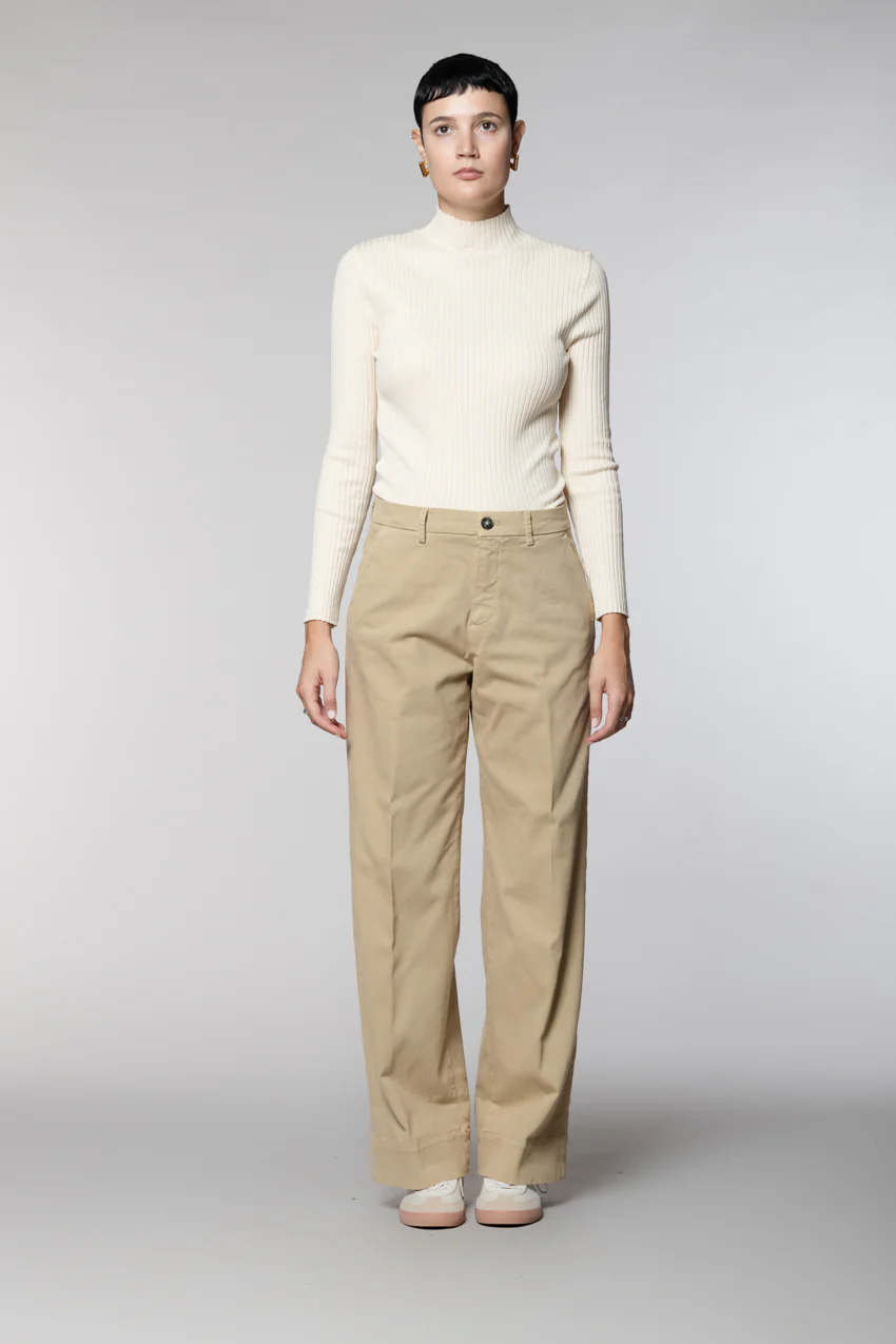 New York Studio pantalon chino femme en mélange coton-laine coupe wide leg