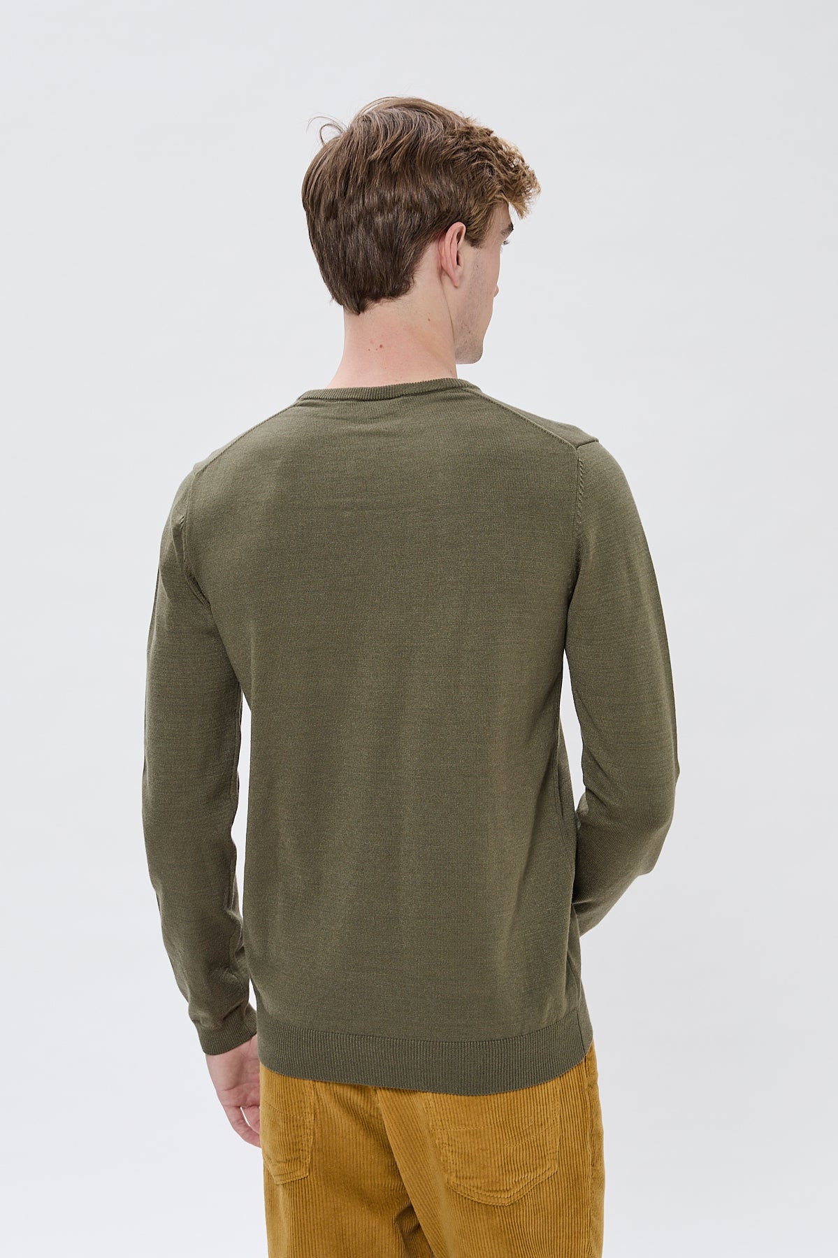 Pull basique confectionné dans une maille douce mêlant viscose, polyester et polyamide, il offre une texture fluide, agréable au toucher, et une bonne tenue au quotidien.