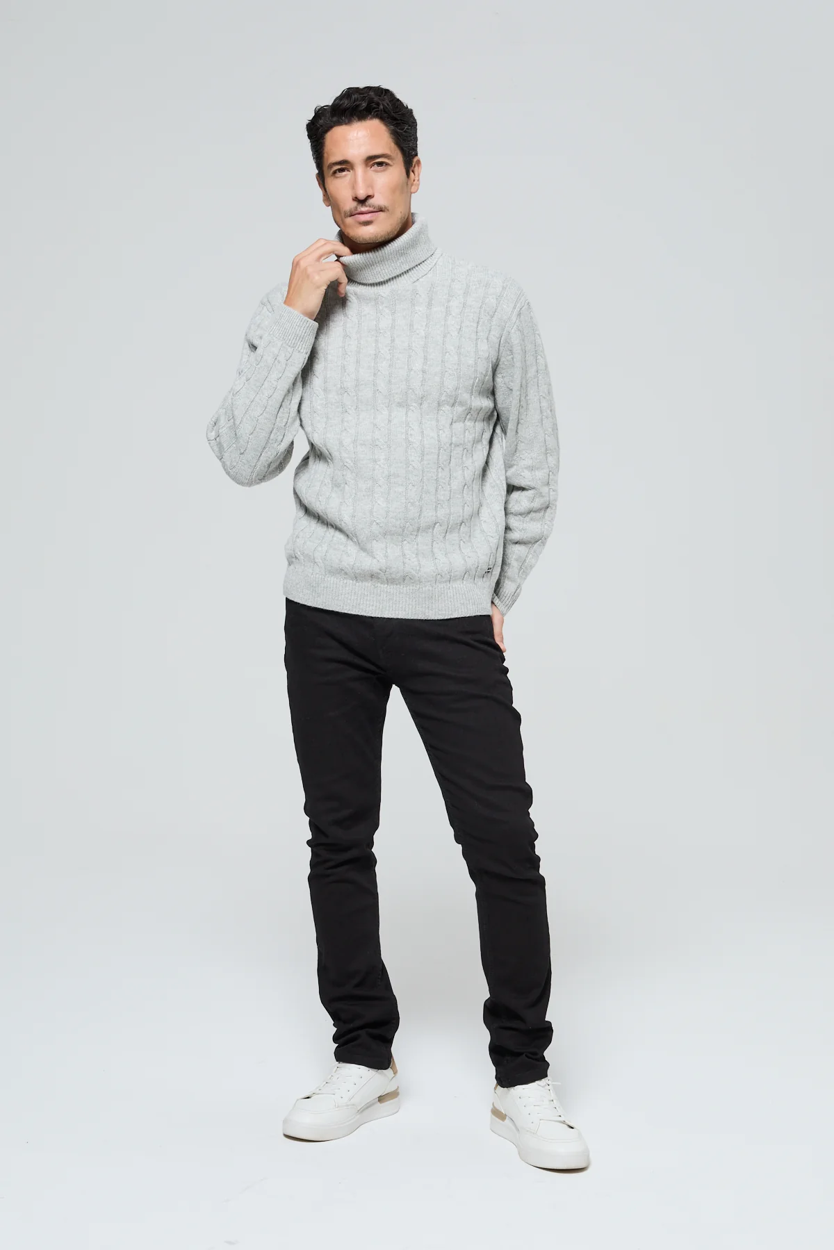 Doté d’un col roulé et de manches longues, ce modèle se distingue par ses légères torsades en relief, qui ajoutent une touche de caractère à une silhouette sobre et intemporelle. Sa maille structurée lui confère un aspect authentique, parfait pour une tenue hivernale soignée sans effort.