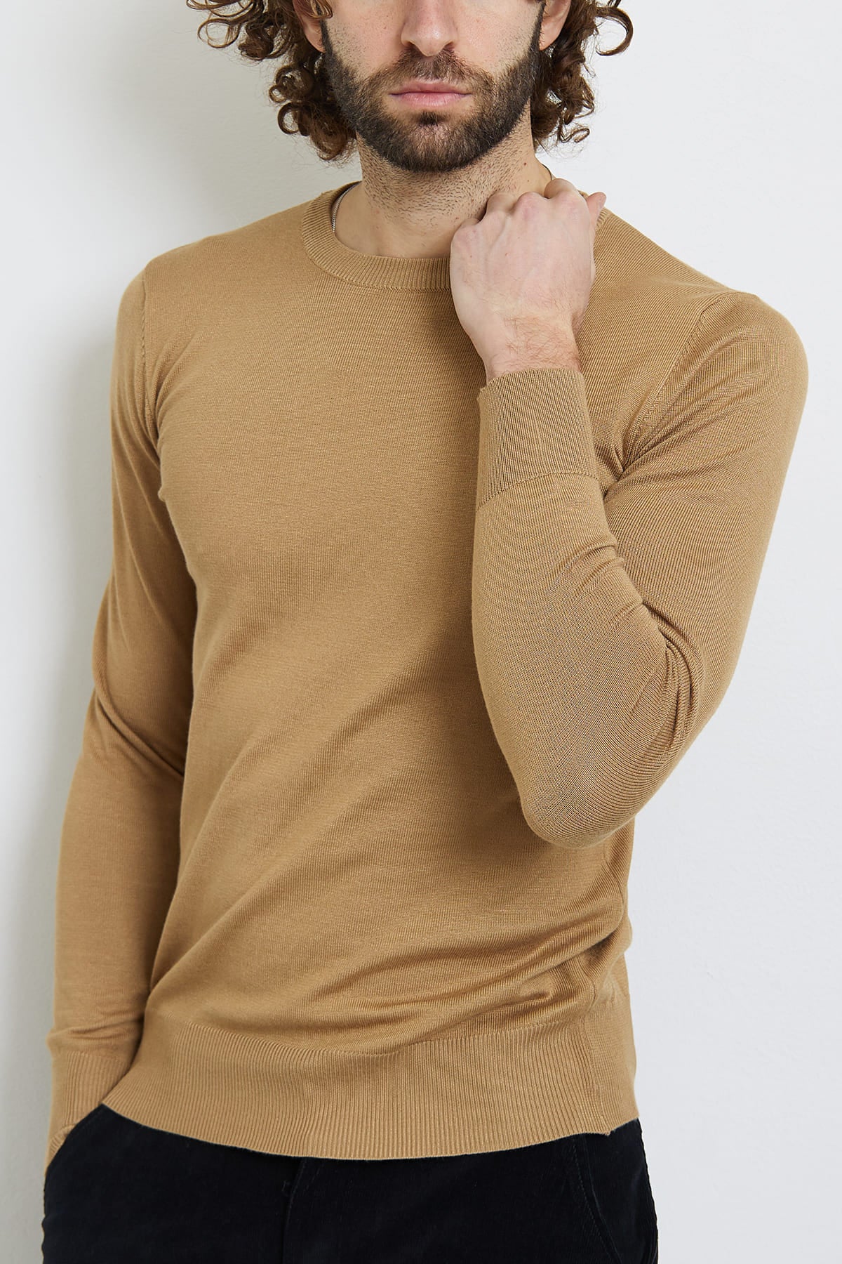 pull col rond basique camel homme CHL99159-21 CAMEL (1)
